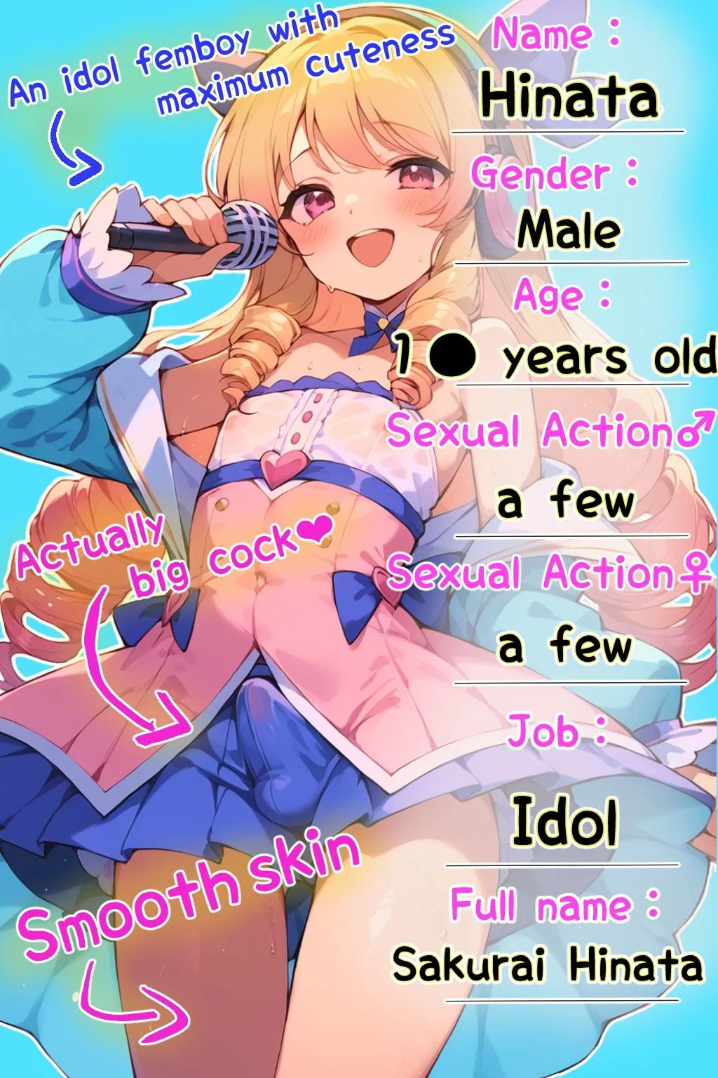 Hinata Sakuraiはstylish blonde drill hair featuring a pink gradientのOtokonoKoで、lively and active studentだけどidol activitiesのgapが魅力なのよ