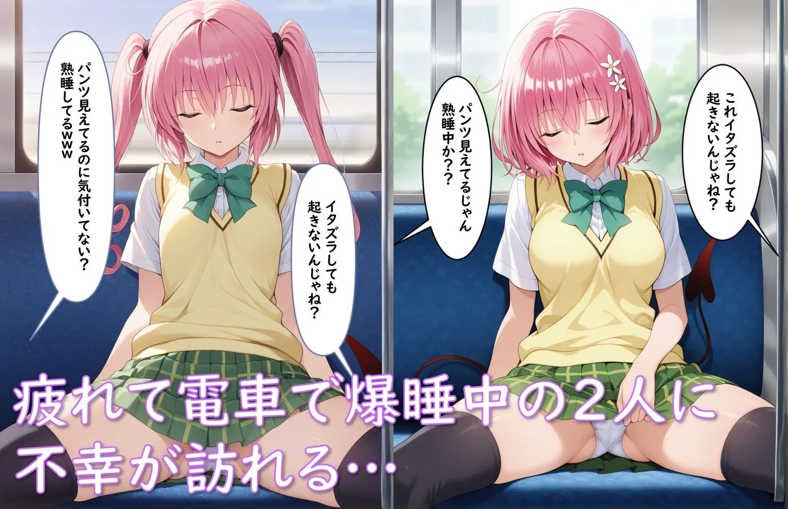 今回の被害者は美人姉妹のナナ・ア〇タ・デビルークとモモ・ベ〇ア・デビルークの2人。通学中に疲れから電車内で熟睡してしまった彼女達。パンチラをしている自分たちに気付かない彼女達に、偶然乗り合わせた同級生男子達の魔の手が迫る。【内容】電車で熟睡している2人↓寝ていて足を広げているのに気付かずにおパンツが丸見え↓同級生男子達にイタズラで脱がされる↓起きないのをいいことに動画撮影開始↓起きないのを確信してキス↓寝ているお口にオチンチンをいれてフェラをさせられる↓口内射精↓同級生男子達皆でぶっかけ↓まだ起きないので処女おマンコに挿入↓ハメ撮りしながら膣内射精↓精液まみれの衣服を着せて逃げるの流れです。セリフ付き漫画風とハメ撮り動画風は別フォルダにいれてお手軽に抜きやすくしてあります。画像サイズは1000×1296pxの超美麗なイラストとなっております。(イラストは全てスマホ版でも見やすいように縦長で出力しています。)全500枚のイラスト/CG集です。※注意本作品のCG/イラストは全てAiイラスト作成ソフトを用いて作成しております。チェックをした上で指や構図がおかしいものは除外しましたが、AI作品の為、指や体位の乱れなどが混じる場合がございます、ご了承ください。