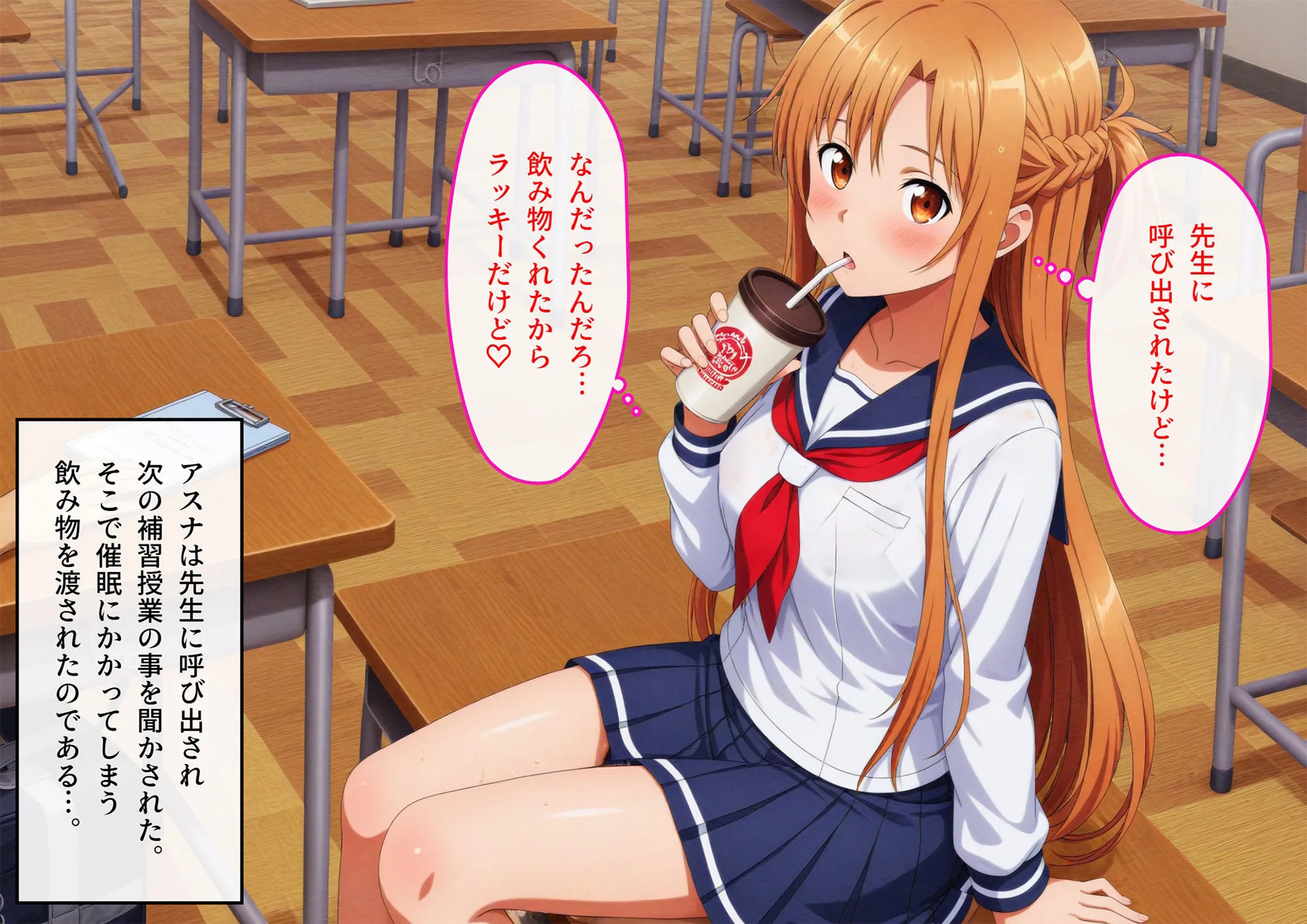 催眠がかかってしまう飲み物を飲んでしまったアスナが強制的にブルマを履かされ、色んな場所で弄ばれる作品だよ