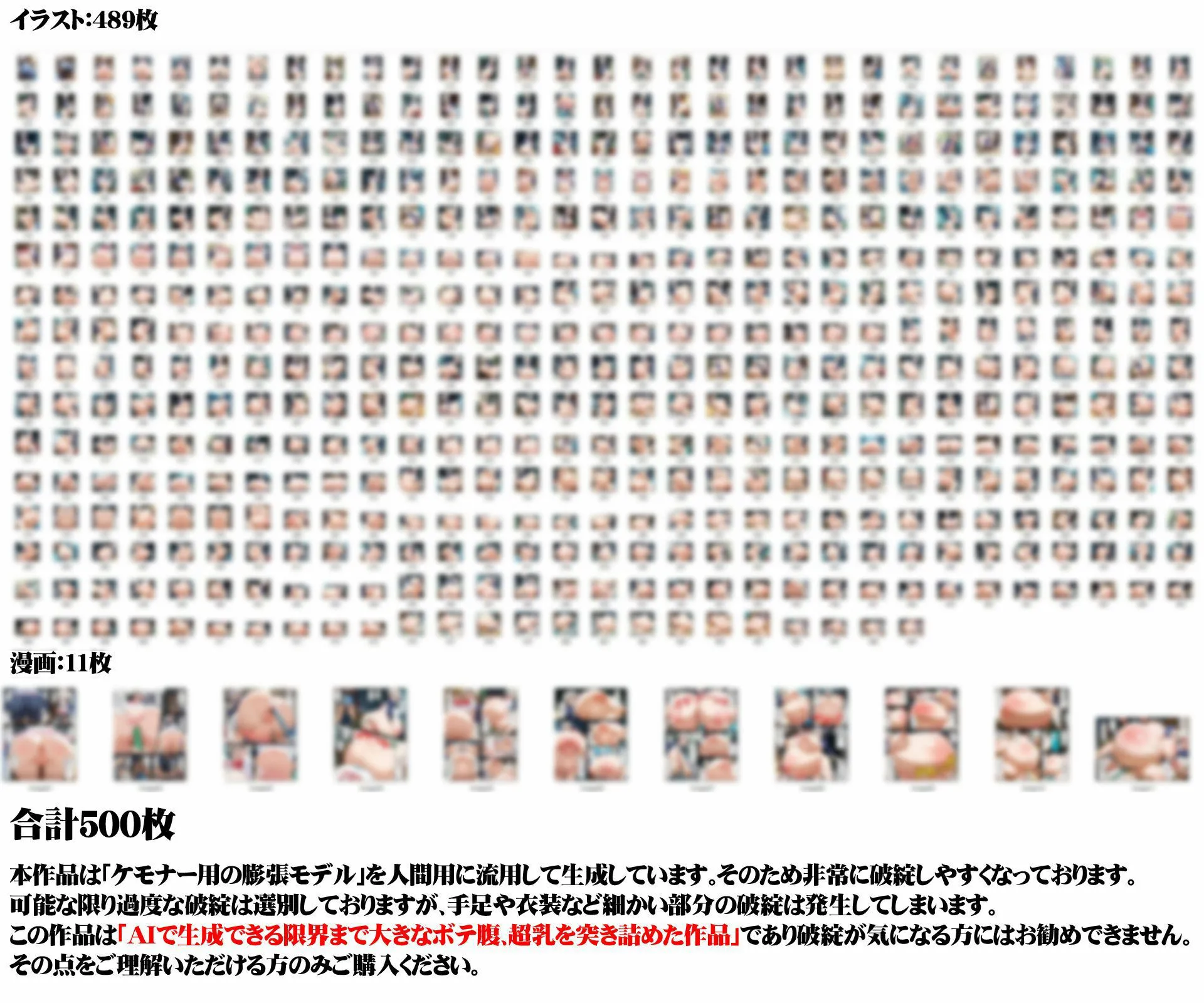 総枚数500枚で、通常のプロンプト、モデルでは出力できない超巨大破裂寸前ボテ腹超乳を詰め込んだ一作なのよ