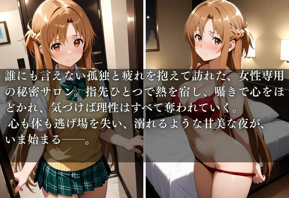 ※サンプル画像は本編より荒く、モザイクも大きくなっております。※アナルは全て無修正となります。【ストーリー】初めて女性用風俗を利用する主人公、味わったことの無い快感に何度もイキまくり清楚系JKが淫乱女と化す。【登場人物】1結城明日奈(ゆうきあすな)【シーン】[ホテル]1着衣2ブラ外し3パンツ脱ぎ4シャツ脱ぎ(上裸・パンツ有)5パンツ脱ぎ(全裸・お尻突き出し)6パンツ脱ぎ(全裸・前から)7咥える(全裸)8恥ずかしがって隠す(全裸・胸隠し)9アへ顔(全裸)[自宅]1パンツ脱ぎ(着衣)2M字開脚3四つん這い4おもちゃ挿入5潮吹き6放尿7事後(パンツ無・着衣)※この作品はAIを利用して作成したものです。※StableDiffusionを使用して生成しております※技術的な制約やAIの学習データによって、細部に破綻や不自然さが含まれる場合があります。購入前に、そのことを理解し、同意した上で購入を検討していただくことをお願いいたします。※購入後の取り扱いに不備があった場合こちらは一切責任を負いません。※商用目的での利用・第三者への譲渡・転載等が発見された際には法的処置をとらせていただき、損害賠償請求を致します。