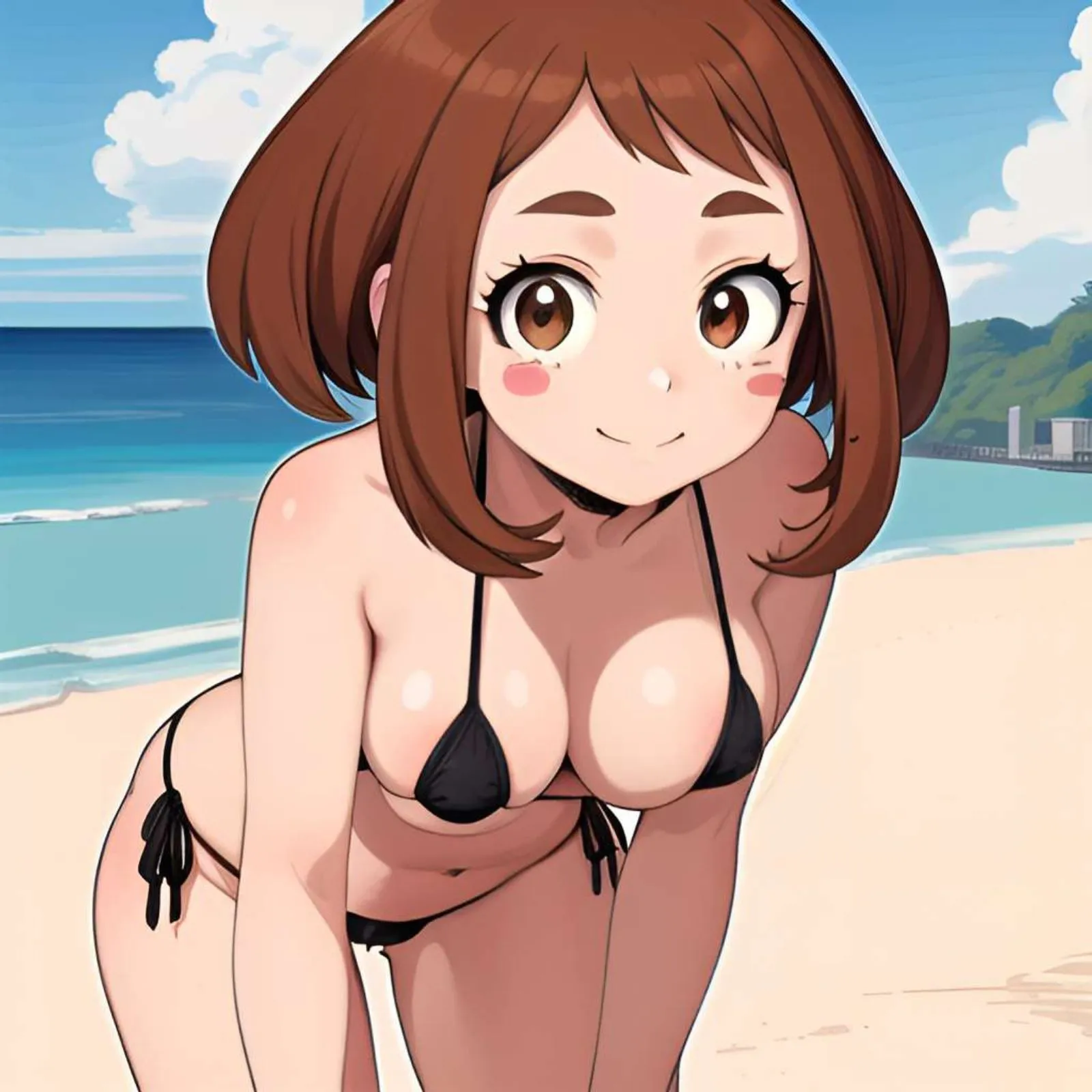 この作品はAI生成イラストで、全100枚の麗日お茶子のえっちなイラスト集なんだよ