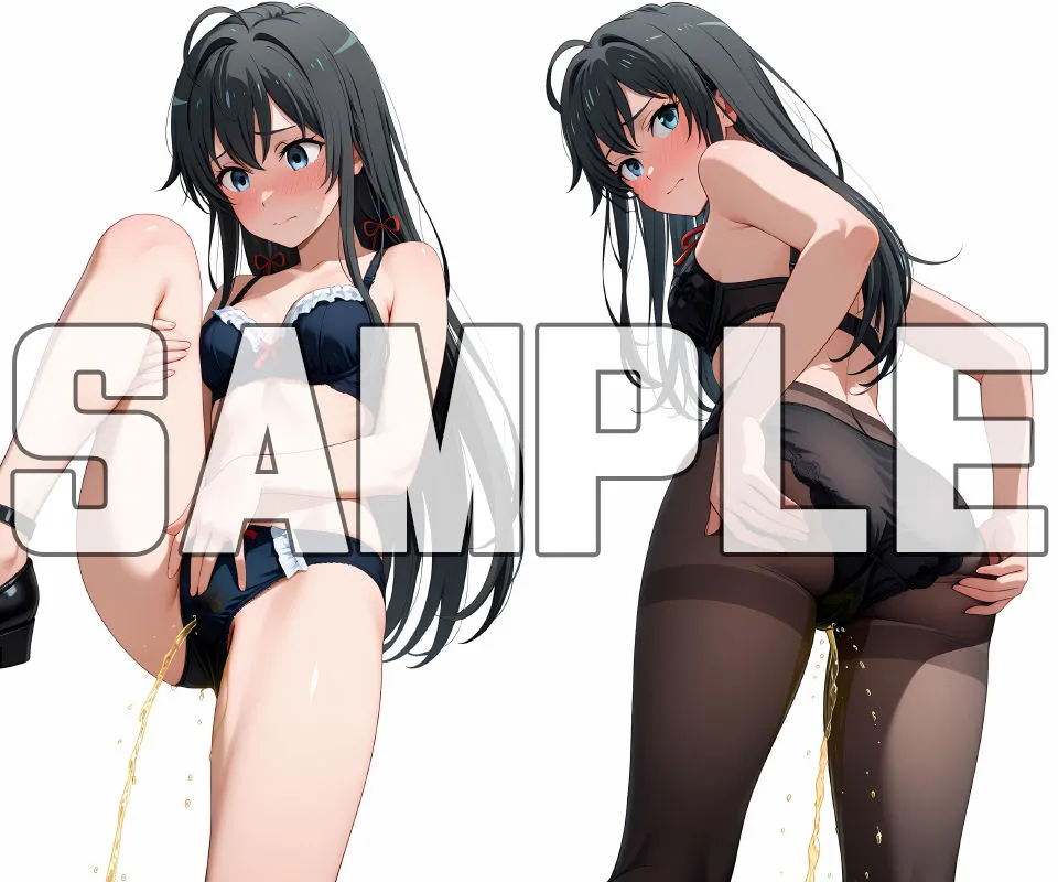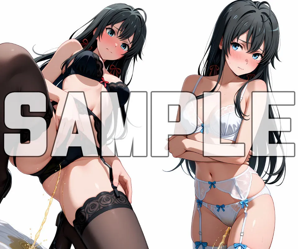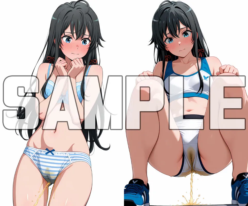 この作品は『やはり俺の青春ラブコメはまちがっている。』の雪ノ下雪乃が下着姿でおしっこお漏らししているCG集で、AI生成作品なんだよ