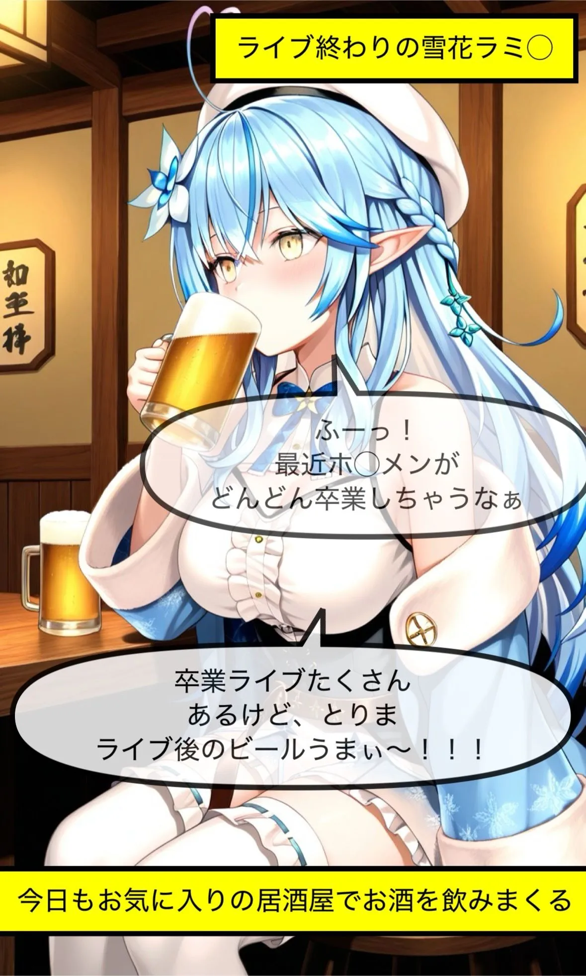 業務過多で忙しい雪花ラミ◯がライブ終わりにお気に入りの居酒屋で生ビールを注文して飲むのよ