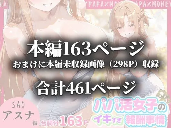 お金だけの関係――そのはずだった。「ごめんね!待った?」パパから渡される札束。最初は冷静に受け取っていたはずの彼女が、次第に目を潤ませて、腰をくねらせるようになっていく…。「あぁ…アスナちゃん…もう我慢できないよ!」その瞬間から、エッチなプレイはどんどんエスカレートしていく…!!「もう…っだめ…えっ…おかしくなっちゃう…っ!」「はぁっ…あっ…んんっ…んはぁっ…!」「だめぇっ!イっちゃう!イっちゃうぅぅっ!!」お小遣いのために受け入れるだけだったはずなのに、絶倫ちんぽに突き上げられるたび、頭の中は快感で真っ白に――。お金目当てだった彼女が、報酬よりも快楽を求めるようになっていく――これがパパ活女子の‘イキすぎ報酬事情’。【プレイ内容】フェラチオ、イラマチオ、ぶっかけ、ごっくん、乳揉み、オナニー、パンコキ、手マン、ベロチュー、正常位、種付けプレス、中出し、口内射精、片足上げ挿入、後背位、騎乗位、駅弁、フルネルソン、バック★★仕様★★台詞付本編163P+本編未収録画像298P+=合計461P大ボリュームの全編フルカラー!