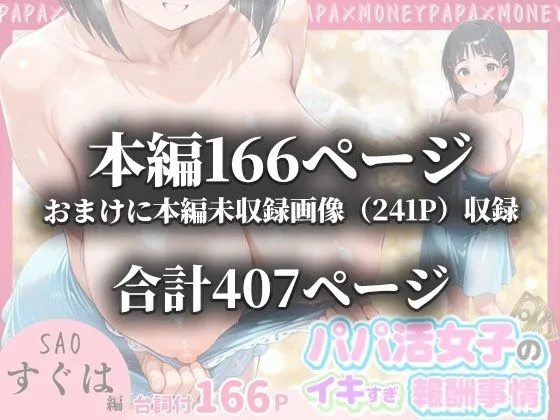 お金だけの関係――そのはずだった。「ごめんごめんっ!遅くなっちゃったっ」パパから渡される札束。最初は冷静に受け取っていたはずの彼女が、次第に目を潤ませて、腰をくねらせるようになっていく…。「あぁ…すぐはちゃん…もう我慢できないよ!」その瞬間から、エッチなプレイはどんどんエスカレートしていく…!!「もう…っだめ…えっ…おかしくなっちゃう…っ!」「はぁっ…あっ…んんっ…んはぁっ…!」「だめぇっ!イっちゃう!イっちゃうぅぅっ!!」お小遣いのために受け入れるだけだったはずなのに、絶倫ちんぽに突き上げられるたび、頭の中は快感で真っ白に――。お金目当てだった彼女が、報酬よりも快楽を求めるようになっていく――これがパパ活女子の‘イキすぎ報酬事情’。【プレイ内容】フェラチオ、イラマチオ、ぶっかけ、ごっくん、乳揉み、オナニー、パンコキ、手マン、ベロチュー、正常位、種付けプレス、中出し、口内射精、片足上げ挿入、後背位、騎乗位、駅弁、フルネルソン、バック★★仕様★★台詞付本編166P+本編未収録画像241P+=合計407P大ボリュームの全編フルカラー!