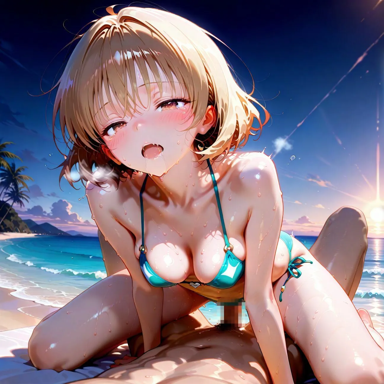 そんな彼女と初めてのバカンスへ行ったよ。人気のないビーチで興奮抑えられない彼女が俺に跨ってくるんだ