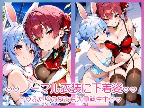 ホロライブの兎田ぺこらと宝鐘マリンの『ぺこマリ』尽くしなCG集だよ。おなじみの3期生ノーマル衣装はもちろん、普段は見られないあんな衣装やあんな髪型まで詰め込んでるんだ