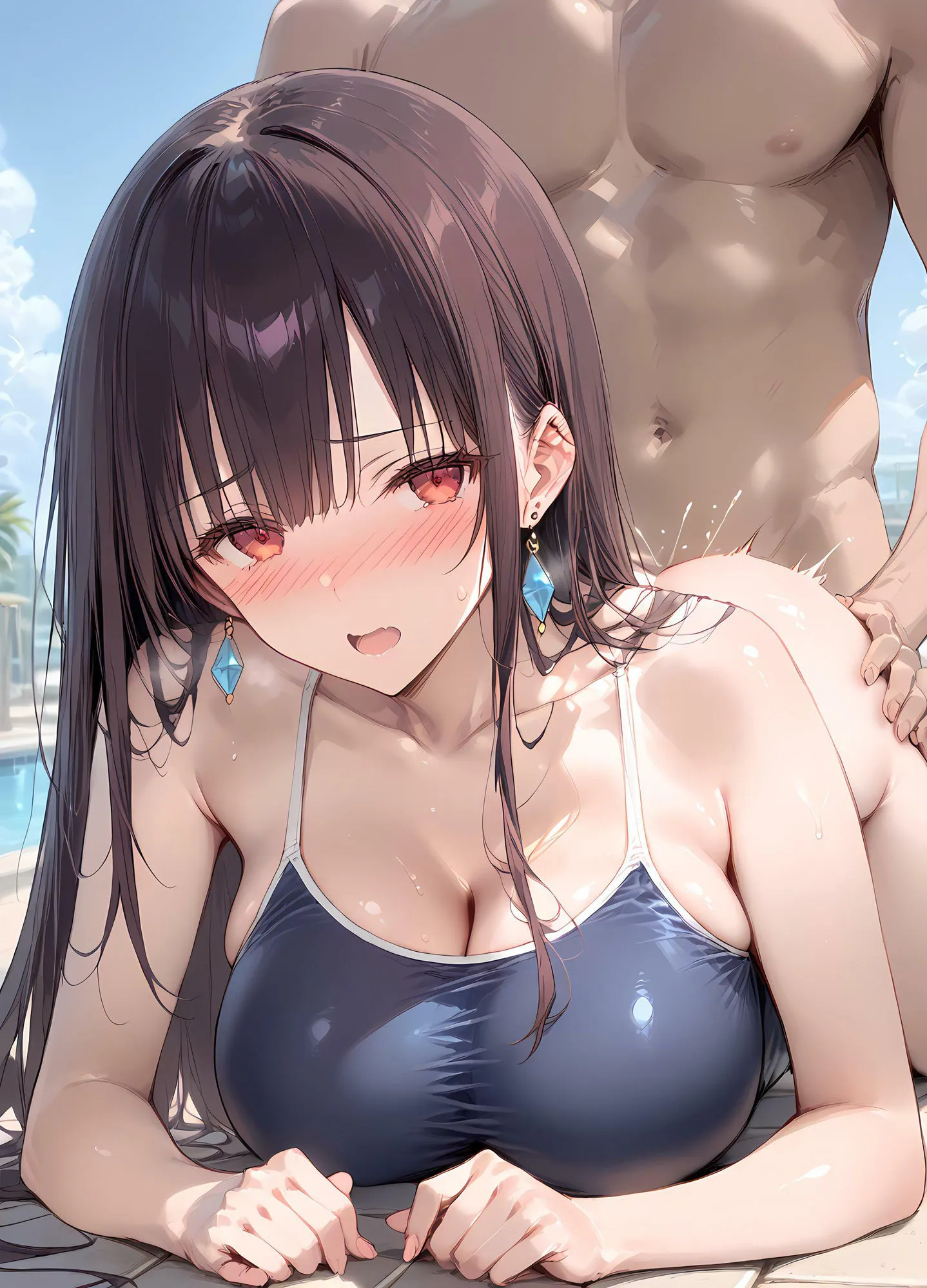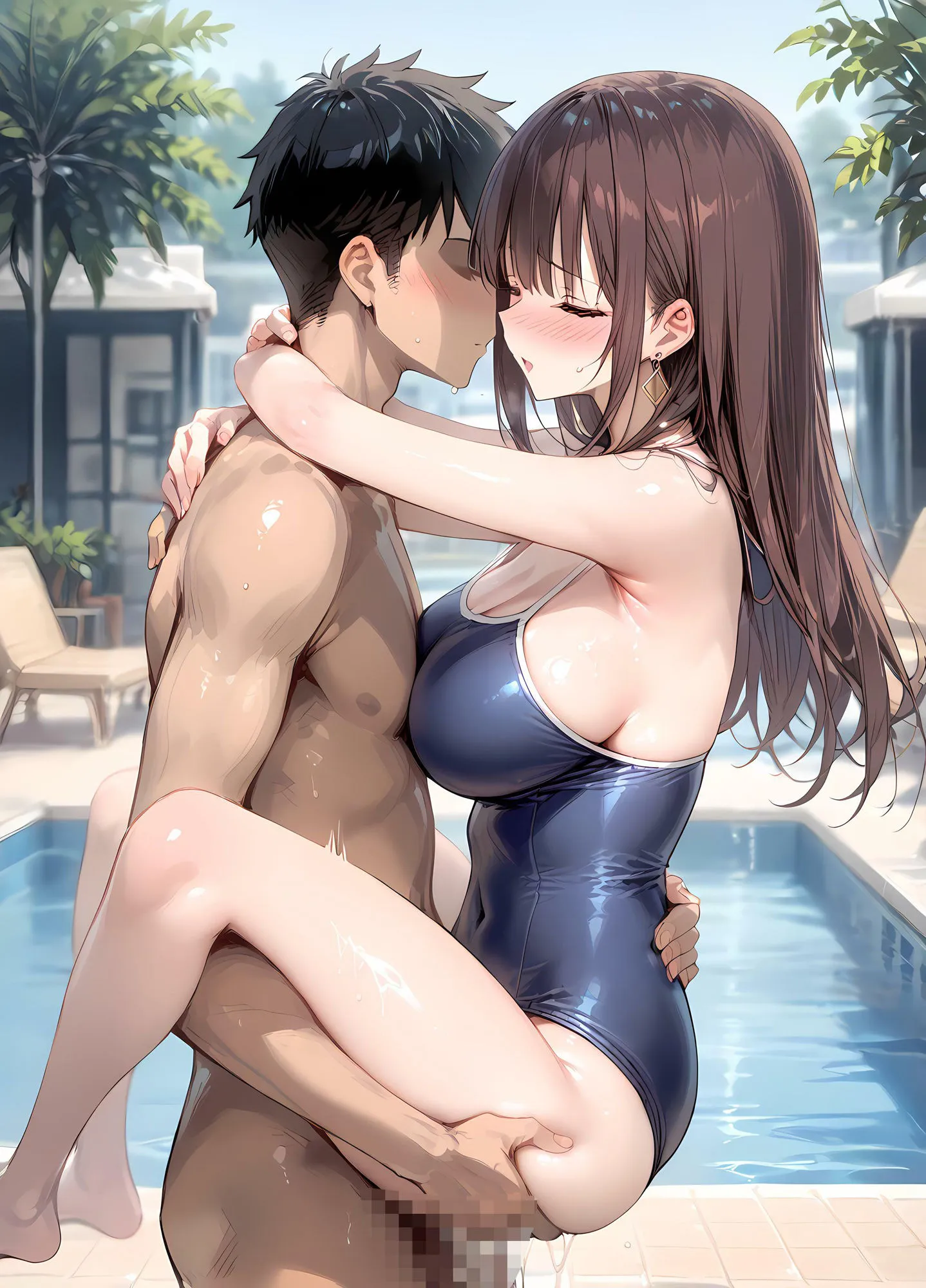 プールサイドでスク水お姉さんにズコバコ種付け性交
