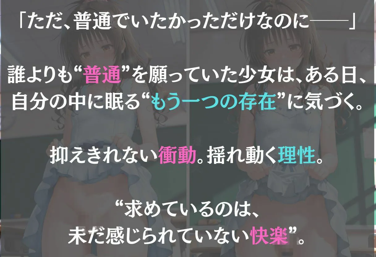 二面性を抱えた少女の、葛藤と覚醒の物語なんだ。人の心の奥底に潜む抑えきれない欲望と孤独を描いた濃密な心理ドラマCG集だよ