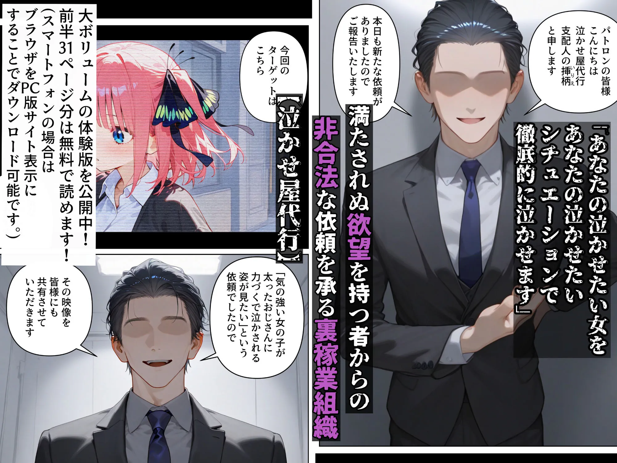 決して法では許されない満たされぬ欲望を持った者からの非合法な依頼を承る裏稼業組織『泣かせ屋代行』よ