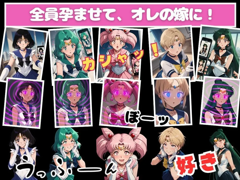 美少女戦士セ●ームーンの外部太陽系戦士たちとちびうさが、謎のアプリに操られてビルの屋上で知らないおじさんに寝取られる内容なのよ