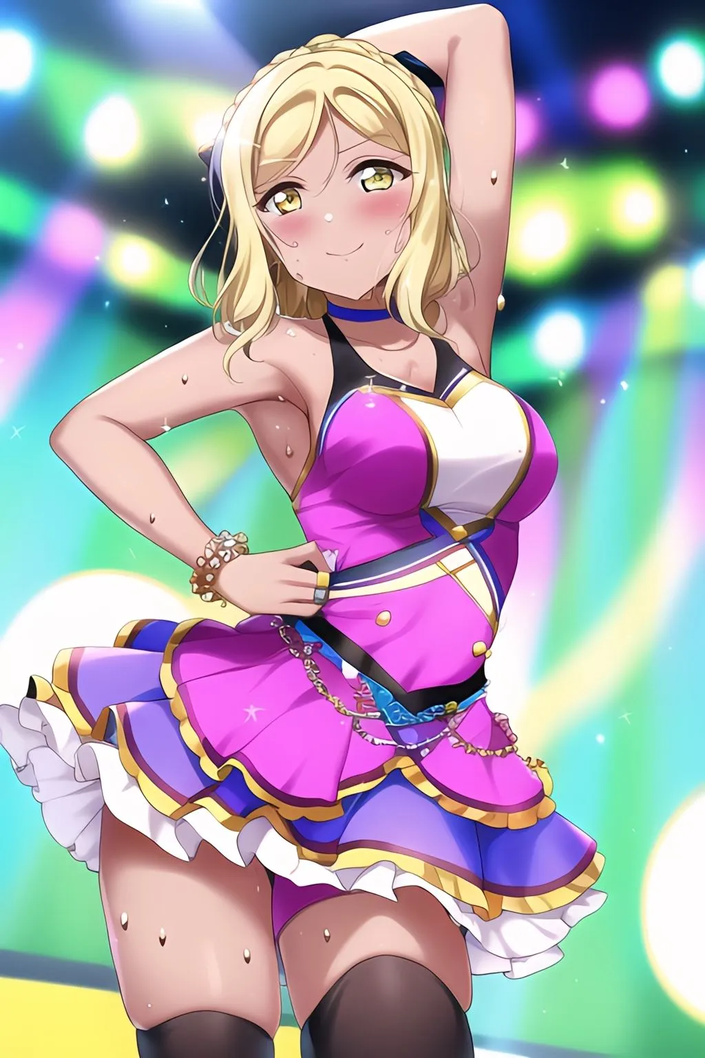 鞠莉ちゃんの頭の右上にある編み込み輪っかの髪型の再現が非常に難しく、全編通して右上の輪っかがございません