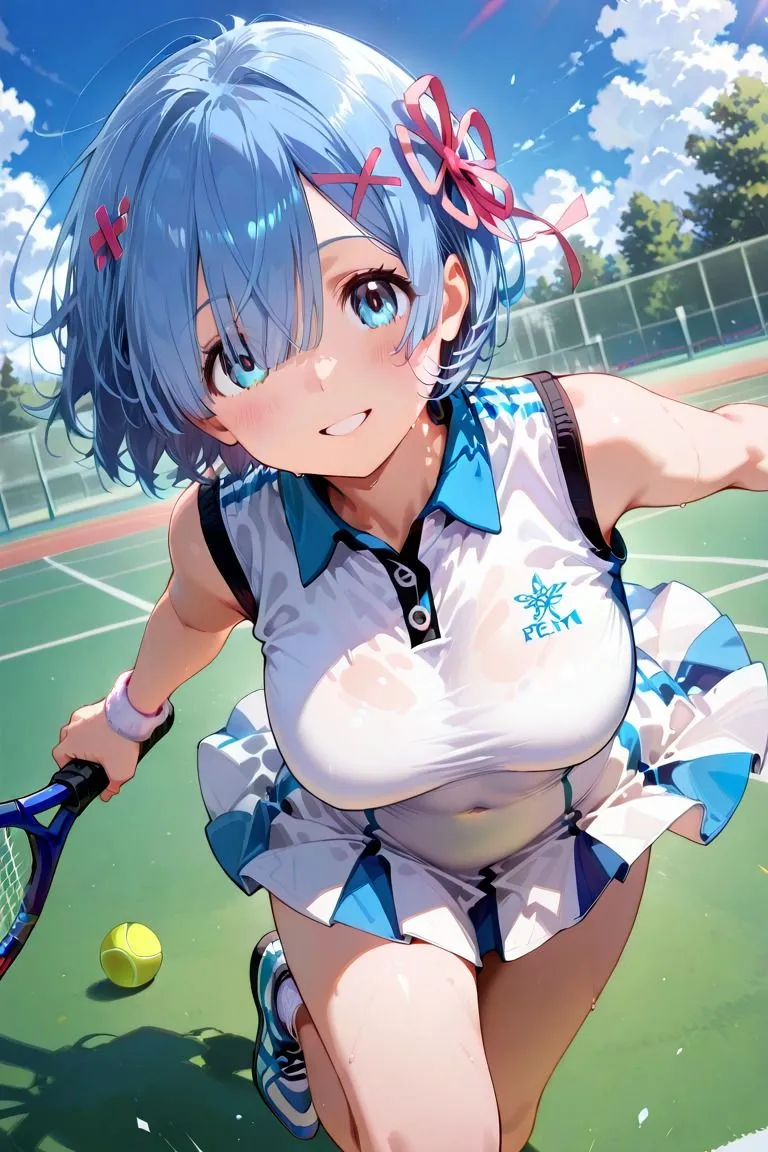 一緒にいい汗かこうよ!テニス部れ〇りんが汗びっしょりになってラケット振ります