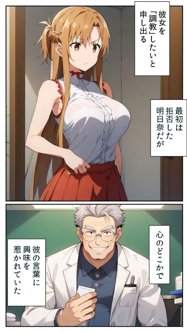 ★シチュエーション結城明日奈、28歳。結婚5年目にして、彼女の人生は崩壊した。なんと夫がその妹と浮気していたのだ。心の底から信用していた二人に裏切られた彼女は、孤独と怒りに苛まれ、復讐心を燃やす。彼女は自らがレンタル人妻となって、夫の友人や上司と関係を持つことで、彼を苦しめるという計画を実行した。そしてアスナは客のひとり「黒沢」というSMマニアの産婦人科医に調教され、真実の愛を知る…?!★見どころ・夫の上司や友人にご奉仕セックス・調教プレイを了承し、焦らしプレイに見悶えたアスナは…・中出しアナルセックスの後、放置されたアスナは…・緊縛プレイの中、愛を確信するアスナ・アスナの新生活をチョイ見せ★ご注意すこしですが、スパンキングやスカトロの描写があります。苦手な方はご注意ください。★セリフ付き同人誌(1440×2560px)88枚セリフ・描きこみ無し版(1440×2560px)88枚おまけ画像(1024×1024px)124枚合計300枚の厳選画像を収録しました。★その他・本作は二次創作作品です。・公式とは一切関係ありません。・登場人物は、すべて18歳以上の成人として作成しています。・AIで生成した画像なので、細部に違和感を感じる場合があるかもしれませんが、ご容赦くださいませ。おおらかな心でお楽しみいただけますと幸いです♪どうぞよろしくお願いいたします!