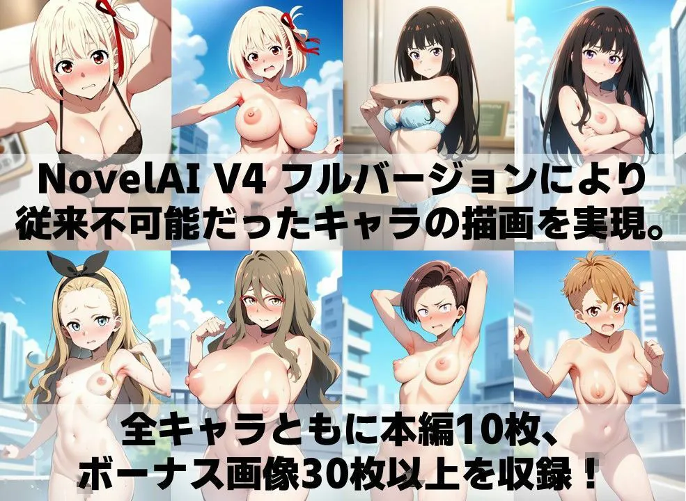 画像は全てNovelAIV4で生成した最新版で、既存商品の『白濁セ◯クス&下着チェック』とイラストの重複はありません