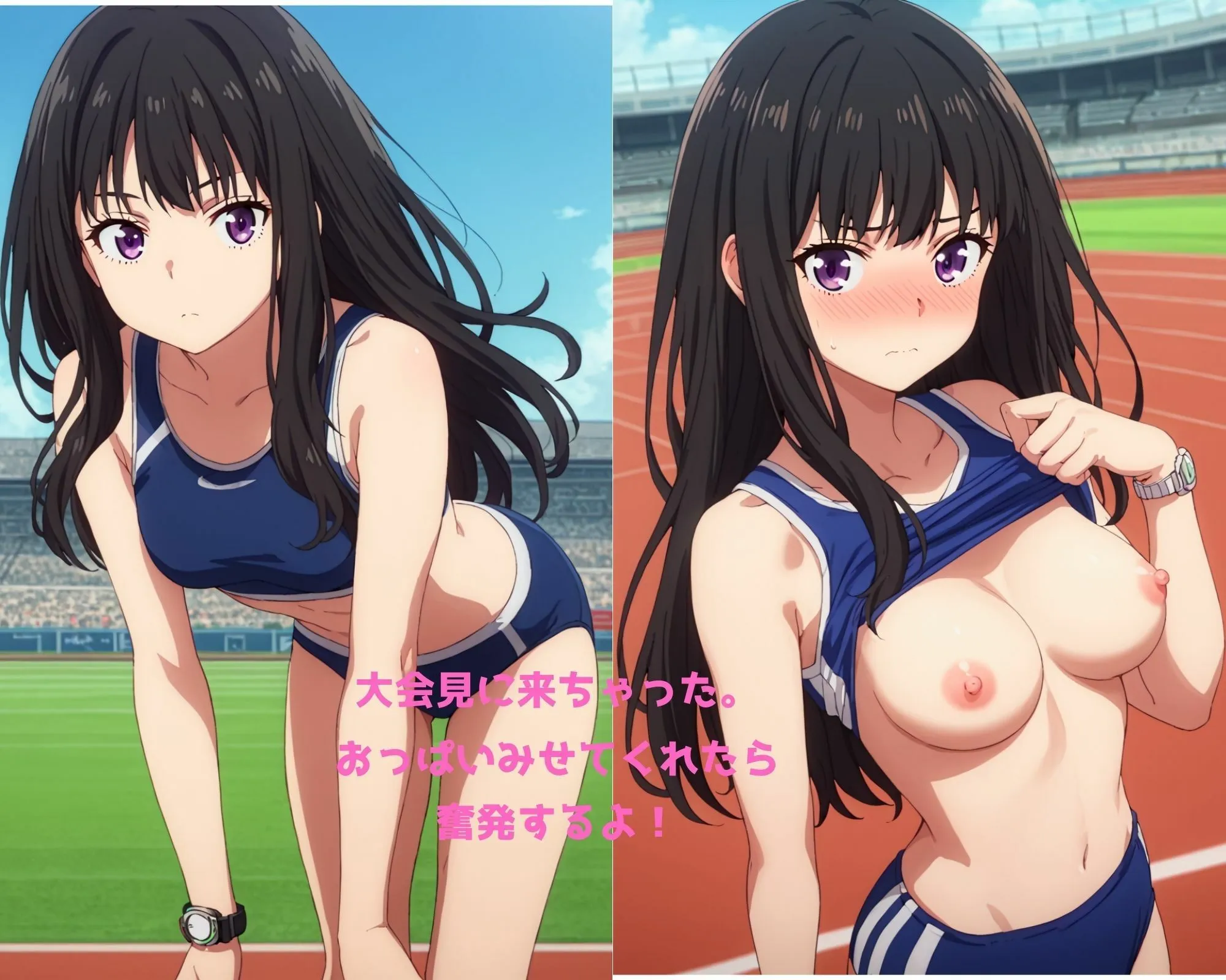 顔や胸の見栄えを優先している為、指などの細かい部分や男性の体などに、生成AI特有の乱れがみられる場合がございますが、ご容赦くださいなのよ