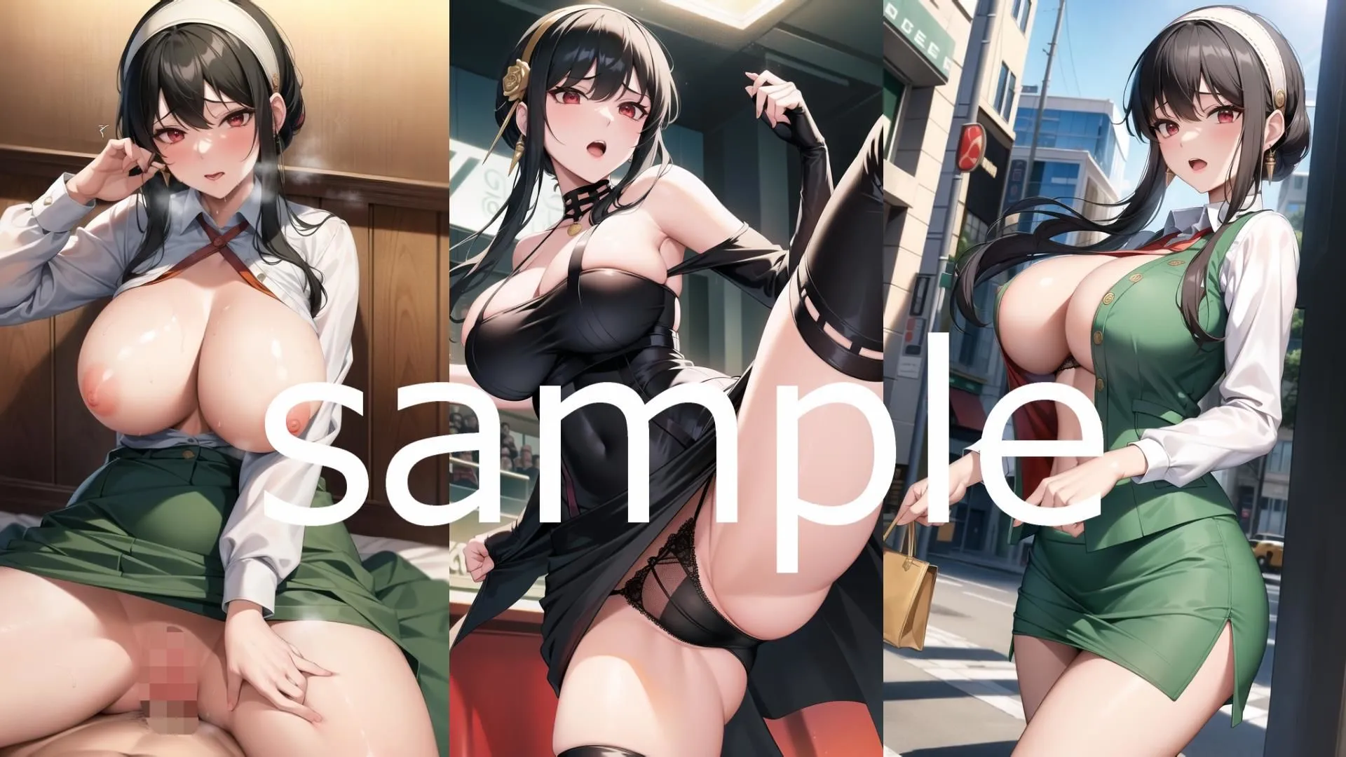 むちむちなヨル・フォージャーの私服イラストや、事務職員制服、作戦服、チアリーダーでのコスチュームイラストがあるのよ
