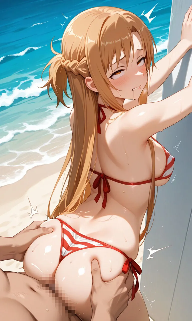 明日奈は水着でM字開脚、乳首責めオナニーでアヘ顔潮吹き、立ちバックで生ハメセックスなのよ