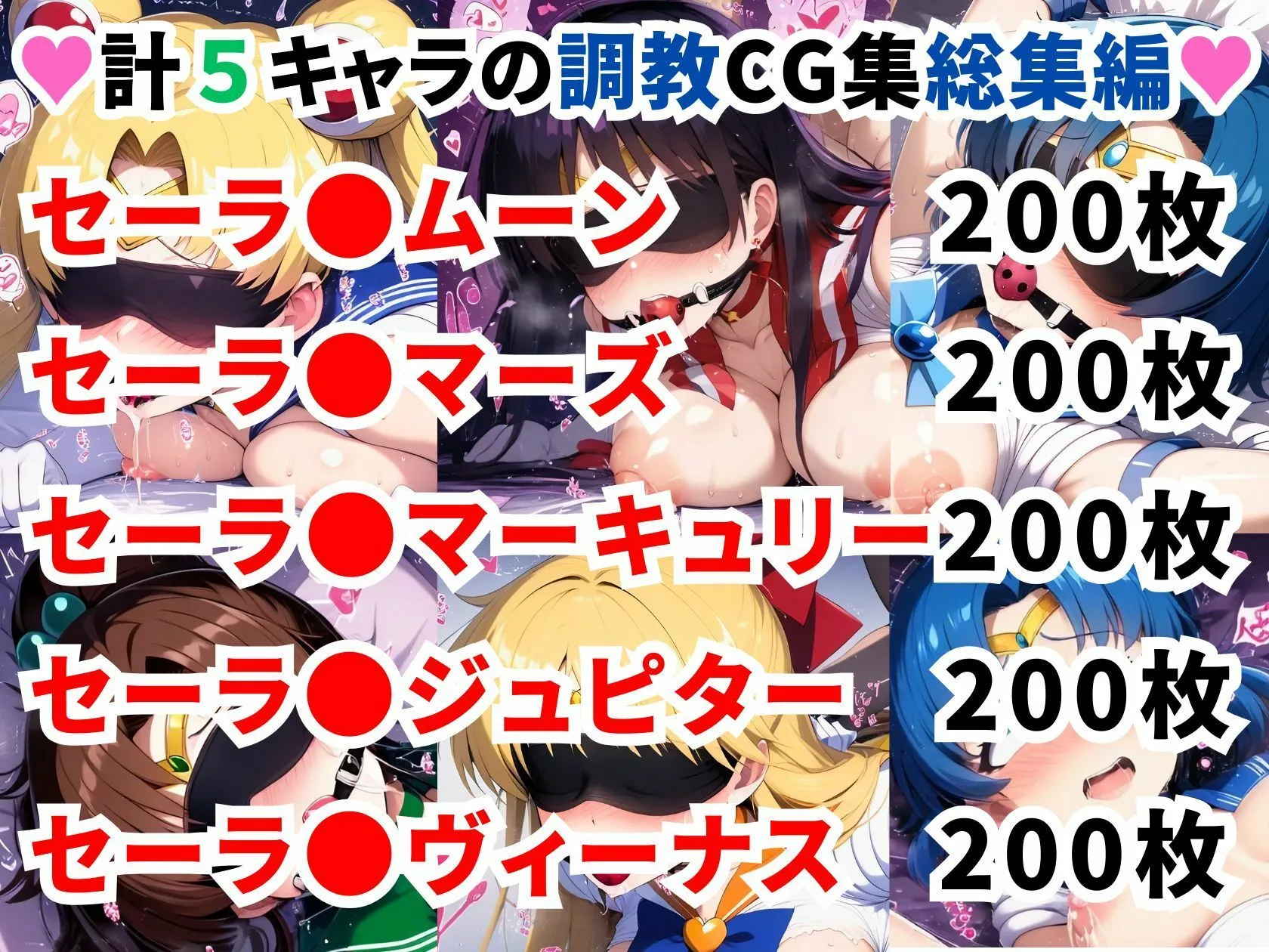 収録作品は調教CG集セーラームーン〜月野うさぎ〜が全200枚で、各キャラごとにしっかり分かれてるよ