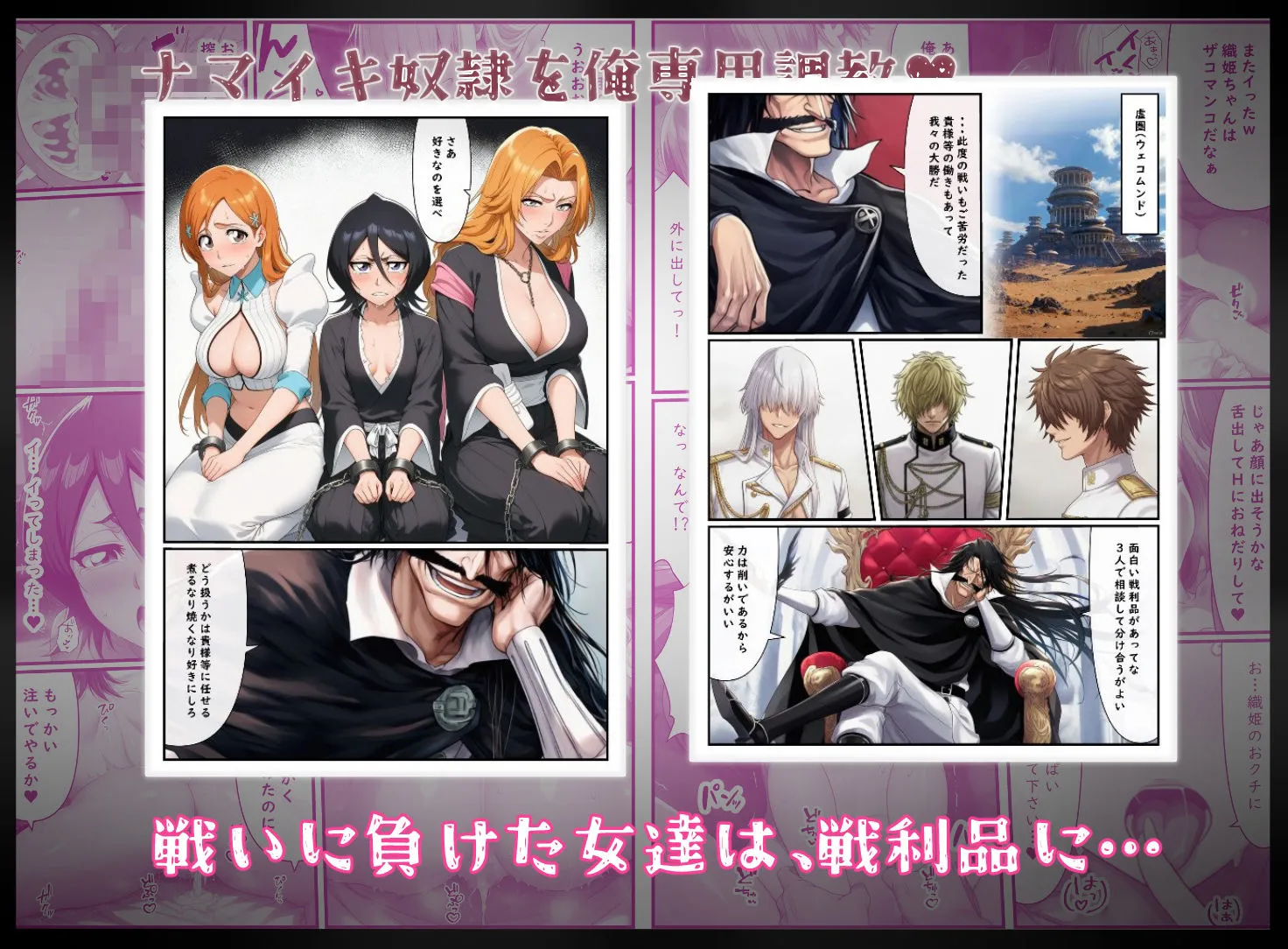 本作はBLEACHのパロディで、3人の女の子が男に好き勝手に調教されちゃう作品だよ