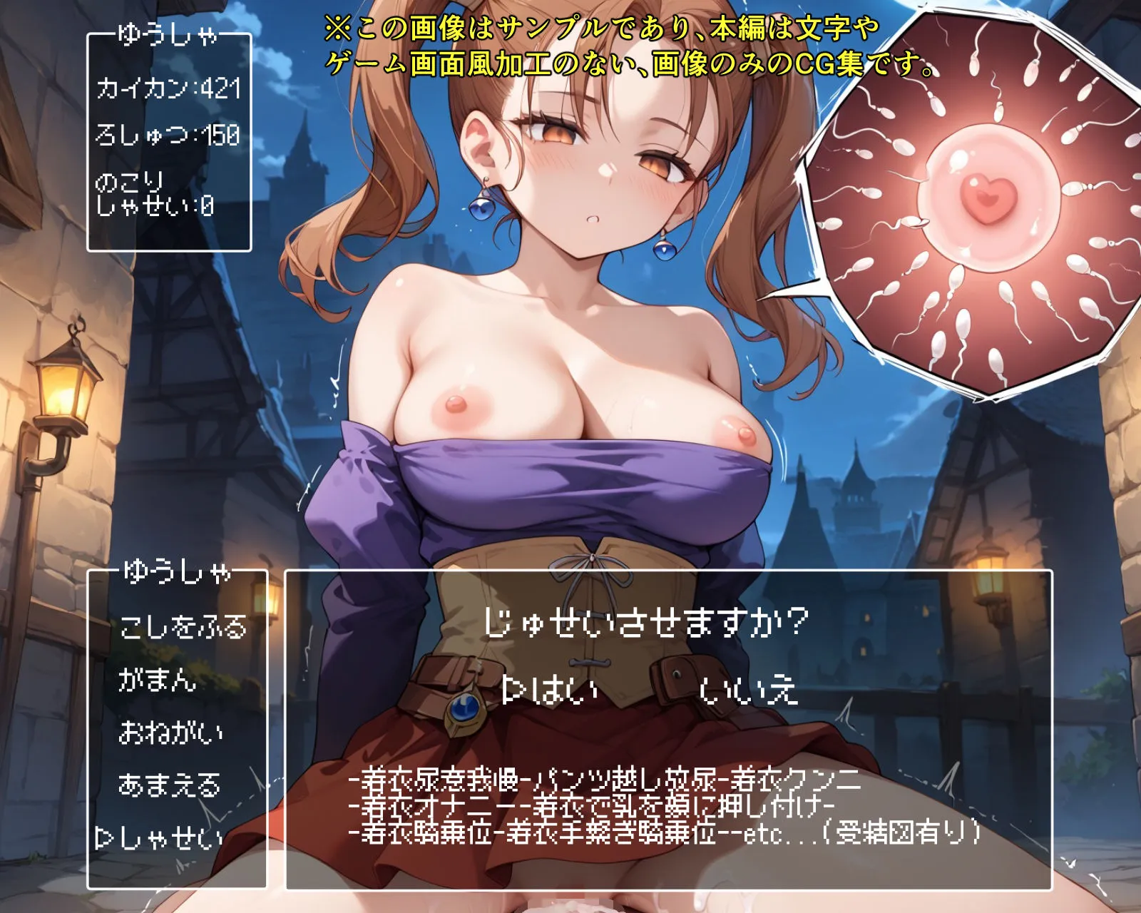2番目は立ち寄った町の宿屋で…、街中で立ち姿、宿屋着衣パイ揉み、着衣パンツ見せ、着衣ベット寝そべりパイ見せ、着衣手コキ、手コキ射精着衣ぶっかけ、etc…で断面図有りだよ