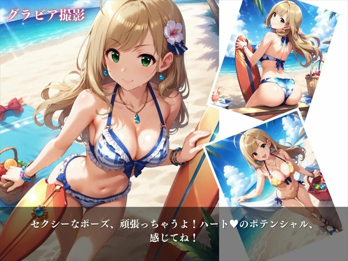 グラビア撮影ではスレンダーなボディラインが際立つ水着姿を披露して、さまざまなポーズで魅力を引き出してるよ