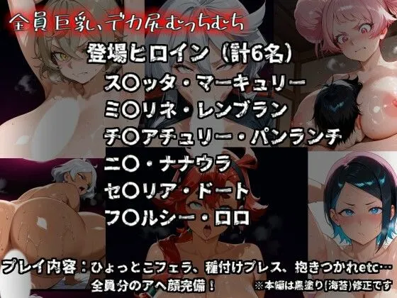 あの魔女やパイロットがショタ後輩達の慰安ミッションを受け仕方なく任務遂行するCG集。最初は嫌がっているがすぐアへ堕ちしちゃいます。今回はガ〇ダム水星の魔女より6名が登場!全員むちむちで、汗だくの裸が多めです。本編は黒線修正です。全362枚画像サイズは全て832×1152となっております。※画像生成AIで生成したイラストに加筆修正し制作しております。※セリフ、ストーリーはありません。予めご了承下さい。