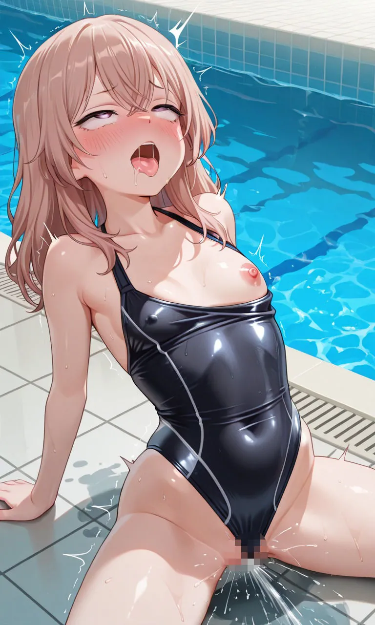 ジュジュ様はプールサイドで制服スケブラ、競泳水着で乳首ビンビンオナニー、競泳水着の隙間から生チンポ挿入アヘ顔セックスでしょ