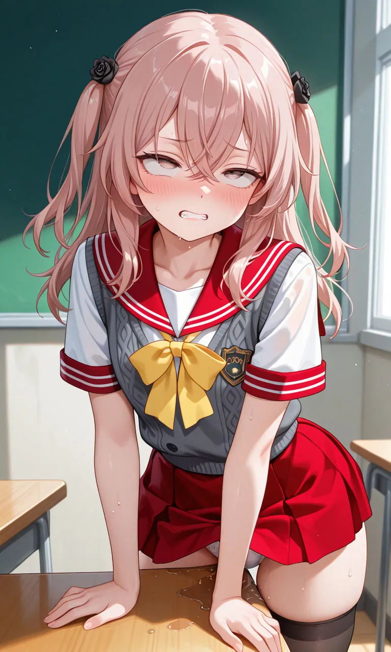 ジュジュ様は制服姿で恥辱のスカートたくし上げパンチラ、学校の机で角オナニーでアヘイキだね