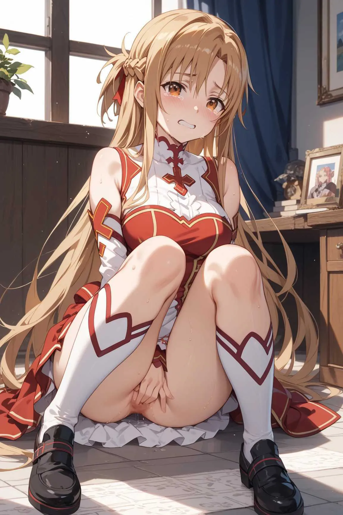ソードアート・オンライン・アスナのコスプレをした女の子。戦士として屈強な彼女でも、生理現象には抗えない…。長引く偵察任務、緊張感が漂うダンジョン、敵との対峙…。極限の状況で、予期せぬ尿意が彼女を襲う。必死に我慢する凛々しい姿、ついに限界を超えてしまう決定的瞬間、そして屈辱と安堵に濡れる表情まで、あなたの「見たい」を詰め込んだCG40枚のコレクションです。【商品仕様】総枚数:40枚ファイル形式:PNG解像度:1152px×1728px