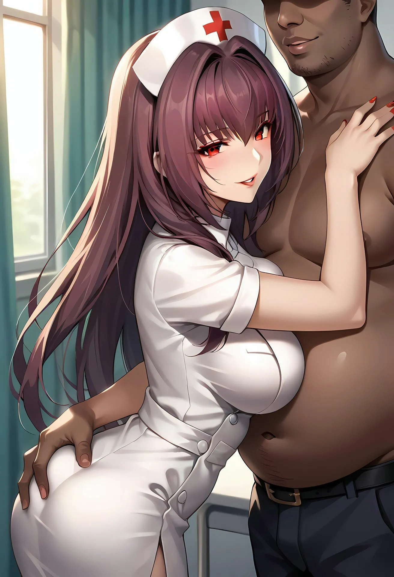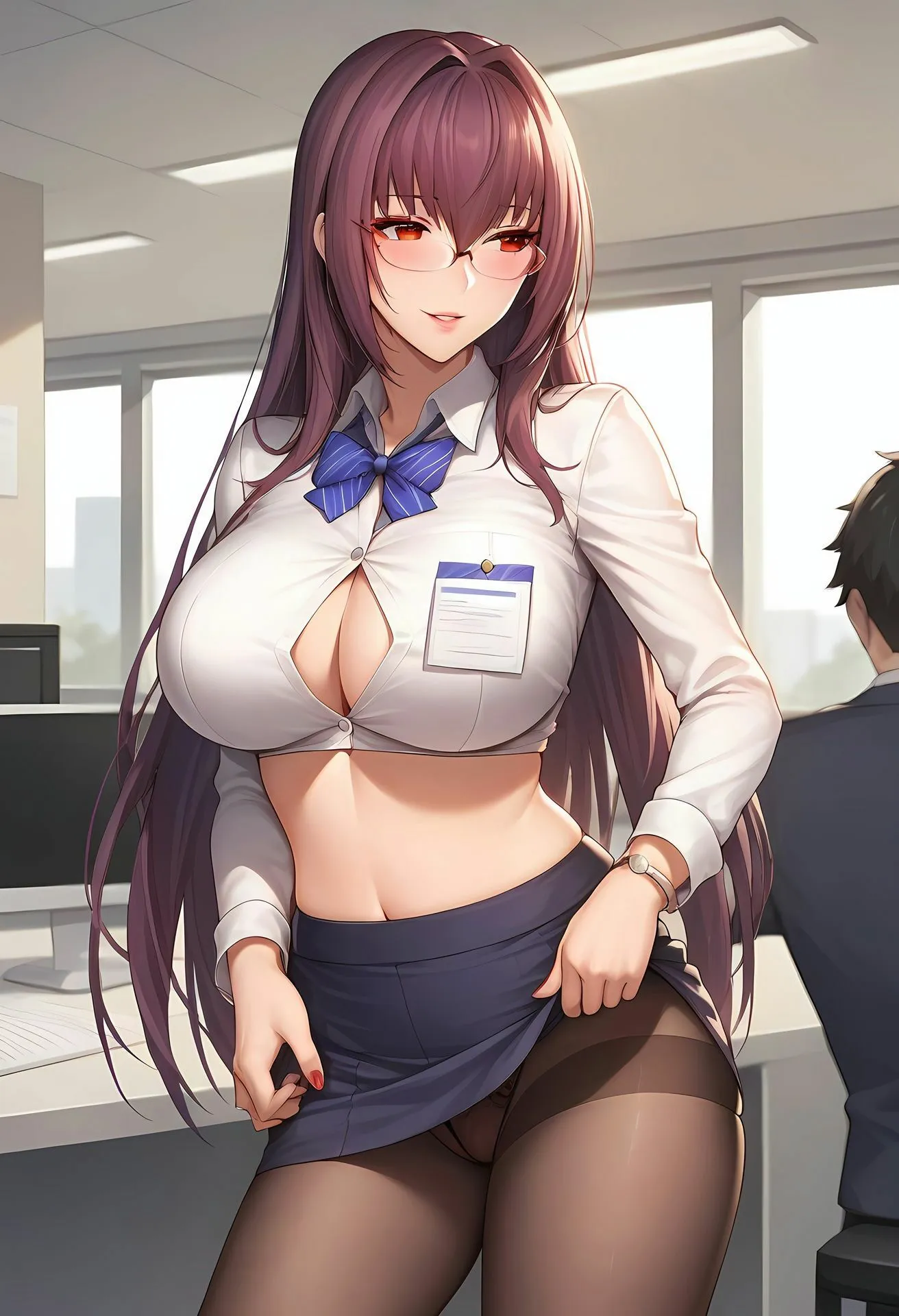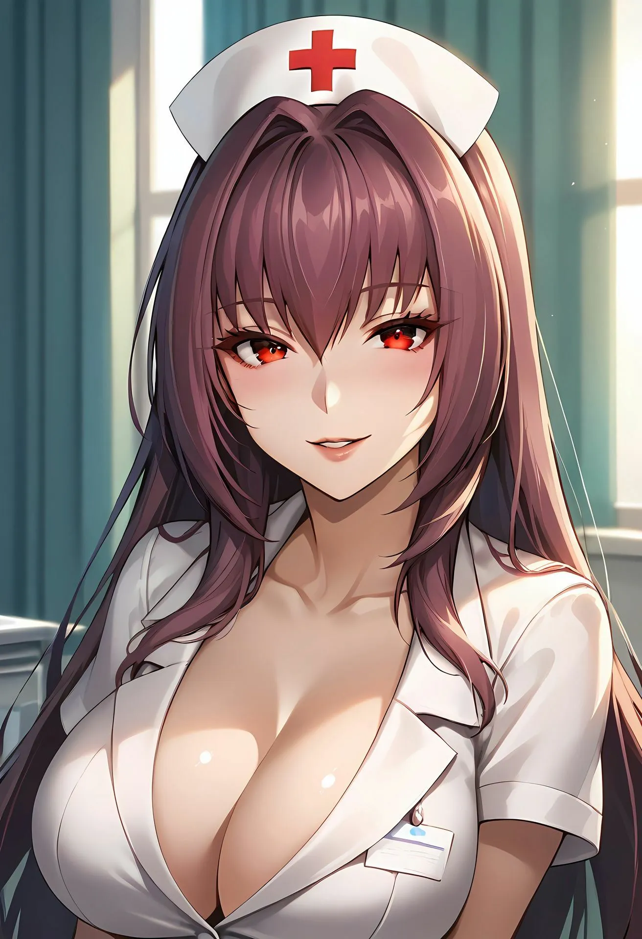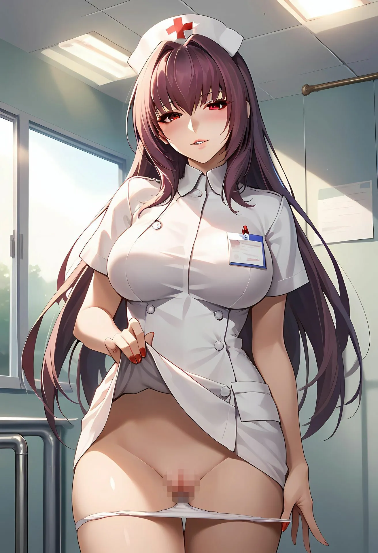 メガネ+OLスーツに巨乳を押し込んだキツキツのナース服で、大人な雰囲気のスカサハに沢山誘惑されるのよ