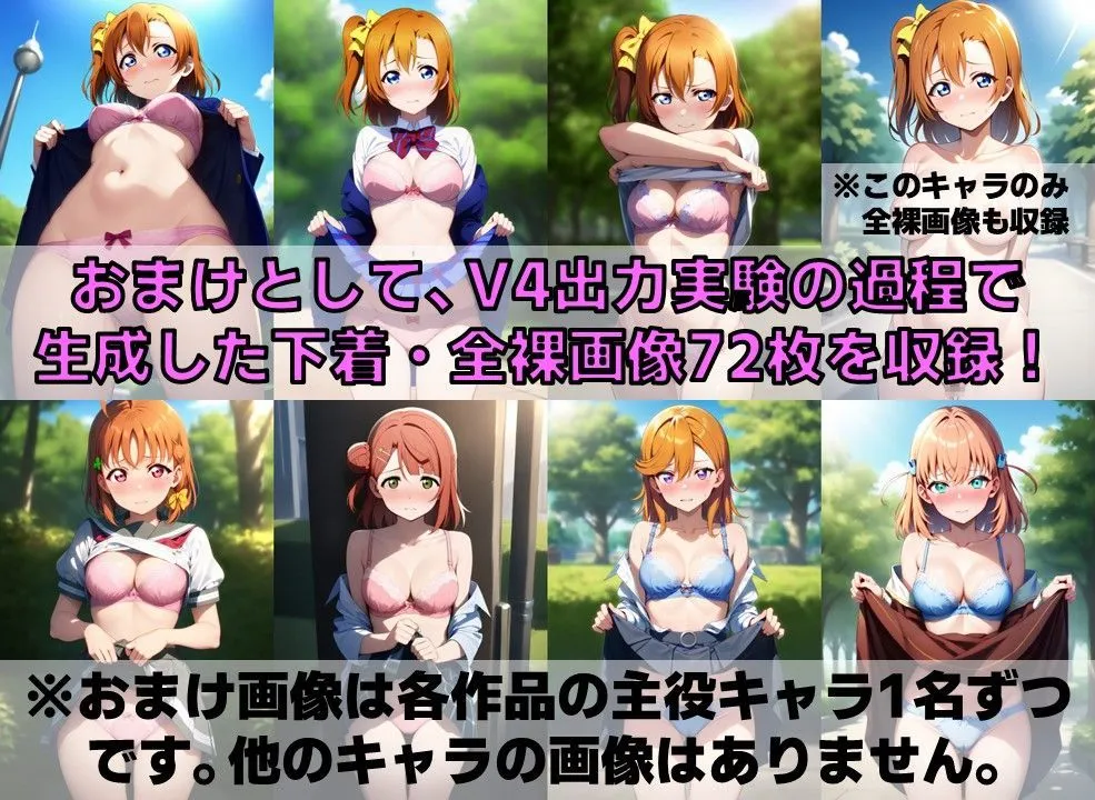 おまけとして、V4出力実験の過程で生成した各作品主役キャラの下着画像も収録してるよね