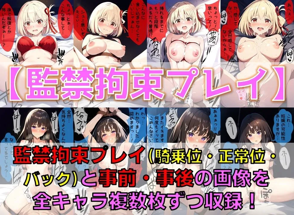 商品内容は監禁拘束プレイの本編画像が1キャラあたり8枚×2キャラで16枚なのよ