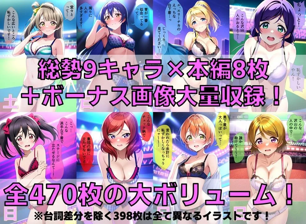 あかね人気の○’sに抜き打ち下着チェック! ラ○ライブに出てきそうな9人のスクールアイドル達の1週間分の下着+全裸羞恥を余さず収録したCG集だよ