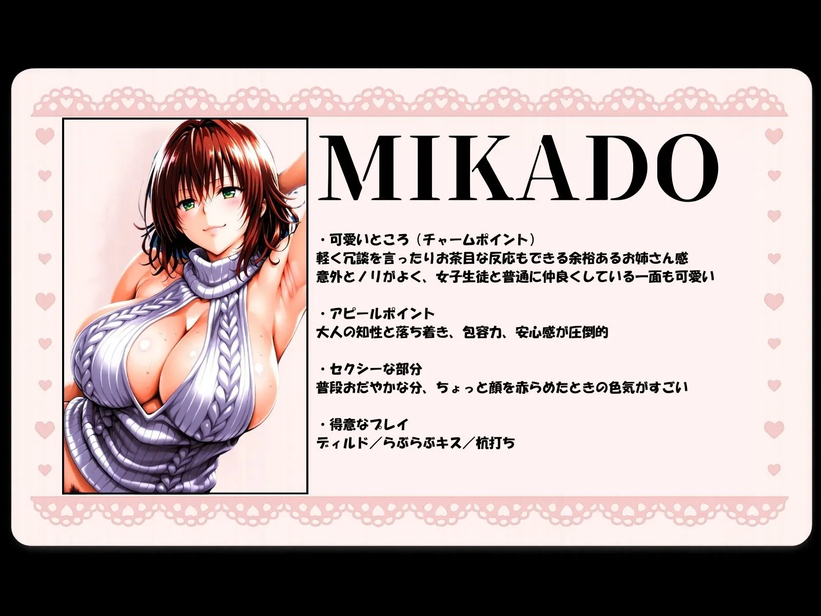本作で描かれるシチュエーションは全てフィクションで、登場する人物や設定等はすべて架空のものだよ