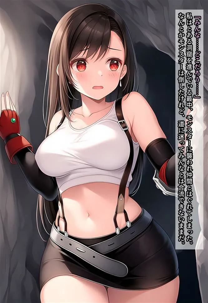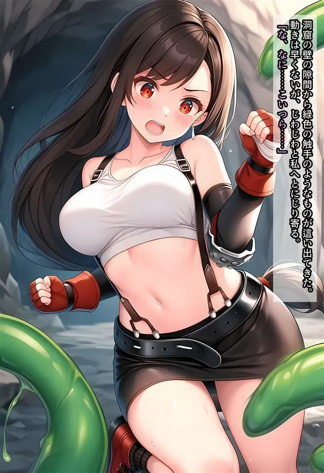 洞窟を探索中、一人はぐれて道に迷ってしまったティファちゃんが休憩中に触手のようなモンスターに襲われちゃうのよ