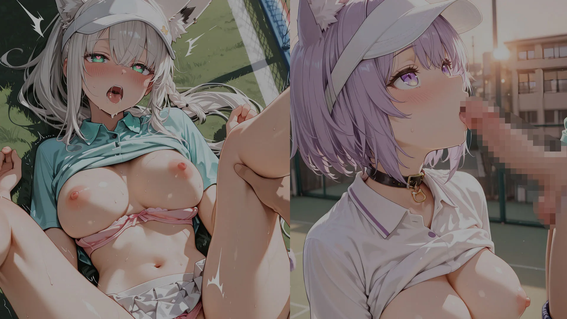 放課後、部活を終えたテニスコート。他の部員たちは帰り、残されたのは彼女と二人きり。汗ばんだユニフォーム姿の彼女、夕日に照らされるコート。練習の疲れも忘れて、二人の間に流れる甘い空気――「ねえ…もう誰もいないよ…」抑えきれない想いが高まり、誰もいないコートで距離が縮まる。恥ずかしそうに頬を染めながらも、彼女は身を委ねてくれる。ネットの影、ベンチの横、フェンスの近く――開放的なコートで、若い身体が激しく絡み合う。汗の匂い、荒い息遣い、制止できない欲望。誰かが来るかもしれないスリルの中、青春の衝動のまま、二人は夢中で求め合う。夕暮れのコートで繰り広げられる、若さと情熱に溢れた秘密の時間。—————————————————————-収録キャラAZ〇i癒月ち〇こ大空ス〇ル白上フ〇キ大神〇オ猫又お〇ゆ角巻わ〇め音〇瀬奏轟は〇めラ〇ーラ・パン〇ーラ結城さ〇な雨海〇カしぐれ〇い—————————————————————-■注意事項◆本作登場人物は20歳以上です。◆こちらの作品はAI生成画像です。手足指などが乱れてる場合がございます。
