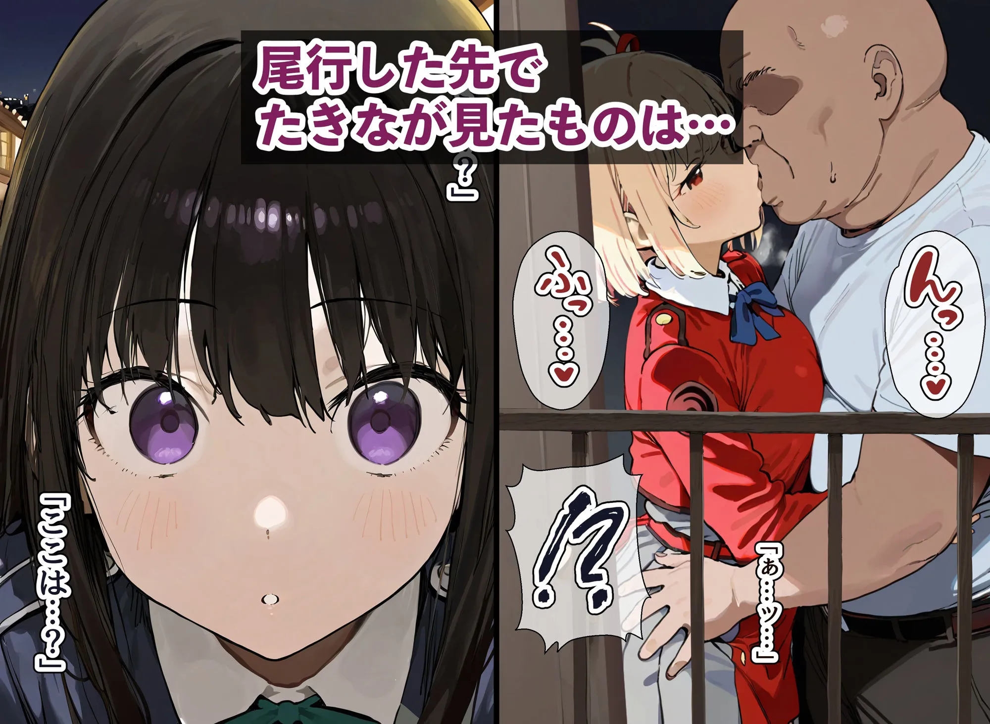 あかねこの作品は【キモ男×美少女】の【完堕ち】にこだわった全編ストーリー・セリフ付きのエロCG集で、リコリス・リコイルの二次創作なんだよ