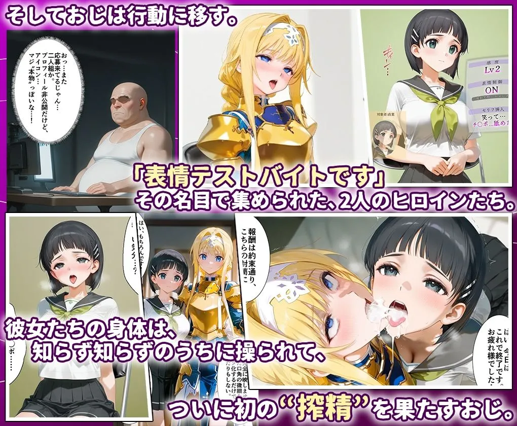 「女に求められたことなんて、一度もない。」性欲に溺れ、孤独に苛まれる田中おじ42歳偶然見つけたサイトの口コミ。精子を奉納すれば性の願いが叶う’という禁断の神社だった。最後の望みに賭けて射精祈願したら…「その願い、叶えてやろう」翌日、能力を試したら確信した。これは、本物だ!!そしておじは行動に移す。「表情テストバイトです」その名目で集められた、2人のヒロインたち。彼女たちの身体は、知らず知らずのうちに操られて、ついに初の‘搾精’を果たすおじ。あれから数日。彼女たちはまた現れた。何の操作もなく、自ら望んで。精液を喉に流し込んだあの日から、もう抜け出せない虜になっていた。身体が、自ずと反応してしまう。彼女たちの指は止まらず、意識せずとも絶頂してしまう。おじの精子の記憶が、脳も膣も魅了している。自ら望んで中出しを求め、膣を開くヒロインたち。快楽も、支配も超えた先にあるものとは…物語は新たな局面へ―【内容物】・文字ありver_211全P・文字なしver_164全P※『セリフあり』の枚数はオノマトペ(喘ぎ声など)を含む枚数の合計となります。※画像生成AIにて生成したイラストに加筆修正し制作しております。※登場するすべてのモデルは架空の世界の架空の人間(18歳以上)を描写しています。