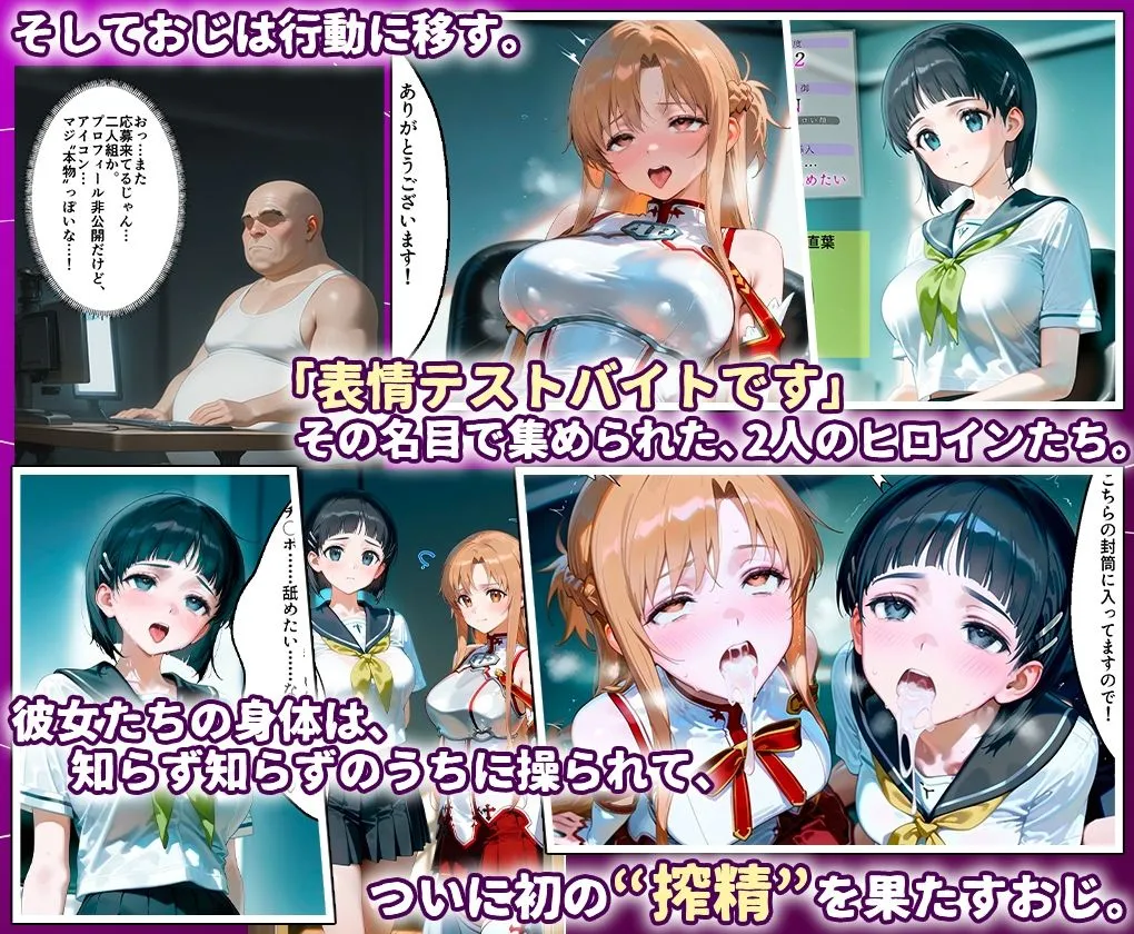 「女に求められたことなんて、一度もない。」性欲に溺れ、孤独に苛まれる田中おじ42歳偶然見つけたサイトの口コミ。精子を奉納すれば性の願いが叶う’という禁断の神社だった。最後の望みに賭けて射精祈願したら…「その願い、叶えてやろう」翌日、能力を試したら確信した。これは、本物だ!!そしておじは行動に移す。「表情テストバイトです」その名目で集められた、2人のヒロインたち。彼女たちの身体は、知らず知らずのうちに操られて、ついに初の‘搾精’を果たすおじ。あれから数日。彼女たちはまた現れた。何の操作もなく、自ら望んで。精液を喉に流し込んだあの日から、もう抜け出せない虜になっていた。身体が、自ずと反応してしまう。彼女たちの指は止まらず、意識せずとも絶頂してしまう。おじの精子の記憶が、脳も膣も魅了している。自ら望んで中出しを求め、膣を開くヒロインたち。快楽も、支配も超えた先にあるものとは…物語は新たな局面へ―【内容物】・文字ありver_211全P・文字なしver_164全P※『セリフあり』の枚数はオノマトペ(喘ぎ声など)を含む枚数の合計となります。※画像生成AIにて生成したイラストに加筆修正し制作しております。※登場するすべてのモデルは架空の世界の架空の人間(18歳以上)を描写しています。