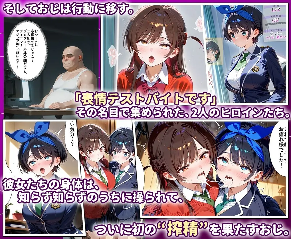 「女に求められたことなんて、一度もない。」性欲に溺れ、孤独に苛まれる田中おじ42歳偶然見つけたサイトの口コミ。精子を奉納すれば性の願いが叶う’という禁断の神社だった。最後の望みに賭けて射精祈願したら…「その願い、叶えてやろう」翌日、能力を試したら確信した。これは、本物だ!!そしておじは行動に移す。「表情テストバイトです」その名目で集められた、2人のヒロインたち。彼女たちの身体は、知らず知らずのうちに操られて、ついに初の‘搾精’を果たすおじ。あれから数日。彼女たちはまた現れた。何の操作もなく、自ら望んで。精液を喉に流し込んだあの日から、もう抜け出せない虜になっていた。身体が、自ずと反応してしまう。彼女たちの指は止まらず、意識せずとも絶頂してしまう。おじの精子の記憶が、脳も膣も魅了している。自ら望んで中出しを求め、膣を開くヒロインたち。快楽も、支配も超えた先にあるものとは…物語は新たな局面へ―【内容物】・文字ありver_211全P・文字なしver_164全P※『セリフあり』の枚数はオノマトペ(喘ぎ声など)を含む枚数の合計となります。※画像生成AIにて生成したイラストに加筆修正し制作しております。※登場するすべてのモデルは架空の世界の架空の人間(18歳以上)を描写しています。