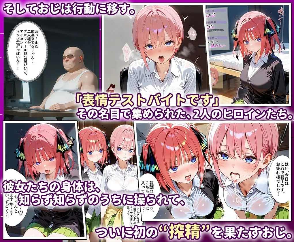 「女に求められたことなんて、一度もない。」性欲に溺れ、孤独に苛まれる田中おじ42歳偶然見つけたサイトの口コミ。精子を奉納すれば性の願いが叶う’という禁断の神社だった。最後の望みに賭けて射精祈願したら…「その願い、叶えてやろう」翌日、能力を試したら確信した。これは、本物だ!!そしておじは行動に移す。「表情テストバイトです」その名目で集められた、2人のヒロインたち。彼女たちの身体は、知らず知らずのうちに操られて、ついに初の‘搾精’を果たすおじ。あれから数日。彼女たちはまた現れた。何の操作もなく、自ら望んで。精液を喉に流し込んだあの日から、もう抜け出せない虜になっていた。身体が、自ずと反応してしまう。彼女たちの指は止まらず、意識せずとも絶頂してしまう。おじの精子の記憶が、脳も膣も魅了している。自ら望んで中出しを求め、膣を開くヒロインたち。快楽も、支配も超えた先にあるものとは…物語は新たな局面へ―【内容物】・文字ありver_211全P・文字なしver_164全P※『セリフあり』の枚数はオノマトペ(喘ぎ声など)を含む枚数の合計となります。※画像生成AIにて生成したイラストに加筆修正し制作しております。※登場するすべてのモデルは架空の世界の架空の人間(18歳以上)を描写しています。