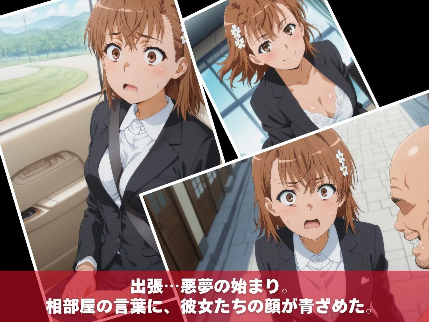 この作品は『とある温泉の超電磁砲〜レベル5の恥辱〜』で、社内でも有名なキモおじ上司との温泉出張に巻き込まれたヒロインたちのコンセプトストーリーなんだよ