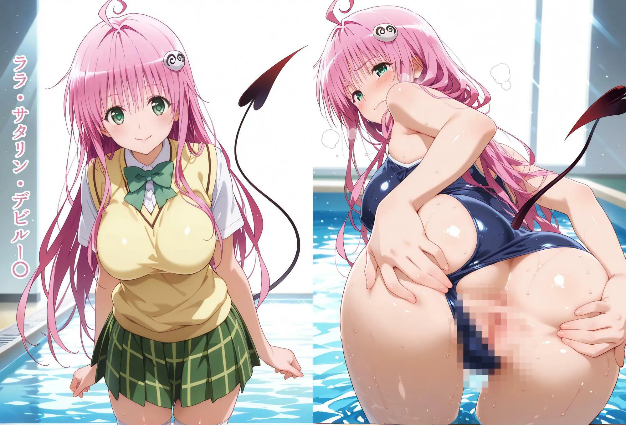 まずはララ・サタリン・デビルーケのプールでスクミズ性指導だよ。日常11枚、スクミズで誘惑59枚、スクミズで性指導(擬音・セリフあり)55枚なんだ