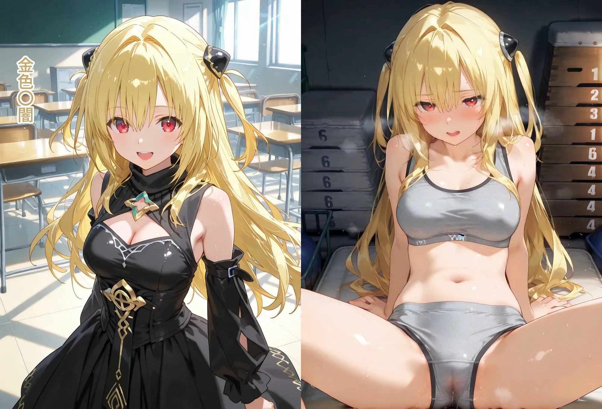 金色闇は体育倉庫でスポブラ性指導。日常13枚、スポブラで誘惑33枚、スポブラで性指導(擬音・セリフあり)78枚で一番多いよ
