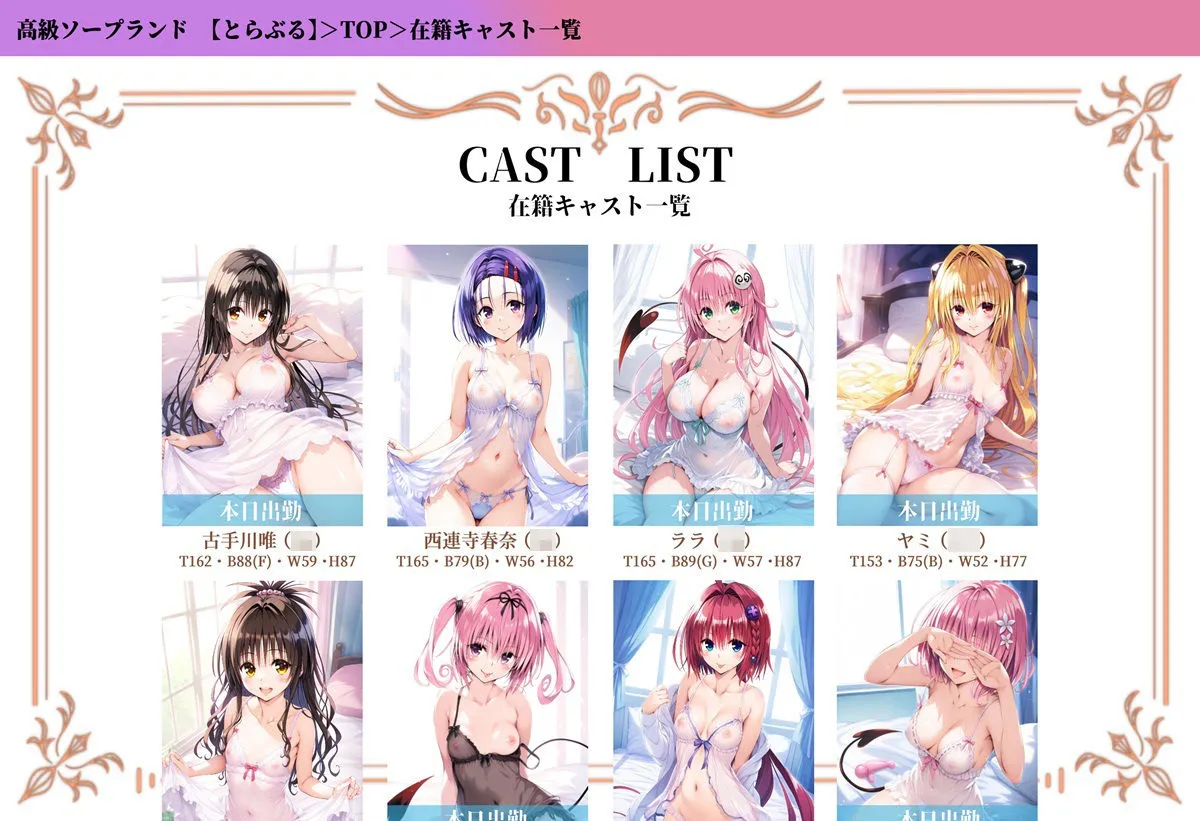 2作目のとらぶるキャラを呼べるデリヘルアプリ2は収録キャラクターモモ・ベ○ア・デ○ルークナナ・ア○タ・デ○ルークララ・サ○リン・デビルーク古○川唯金色○ヤミ西○寺春菜だね