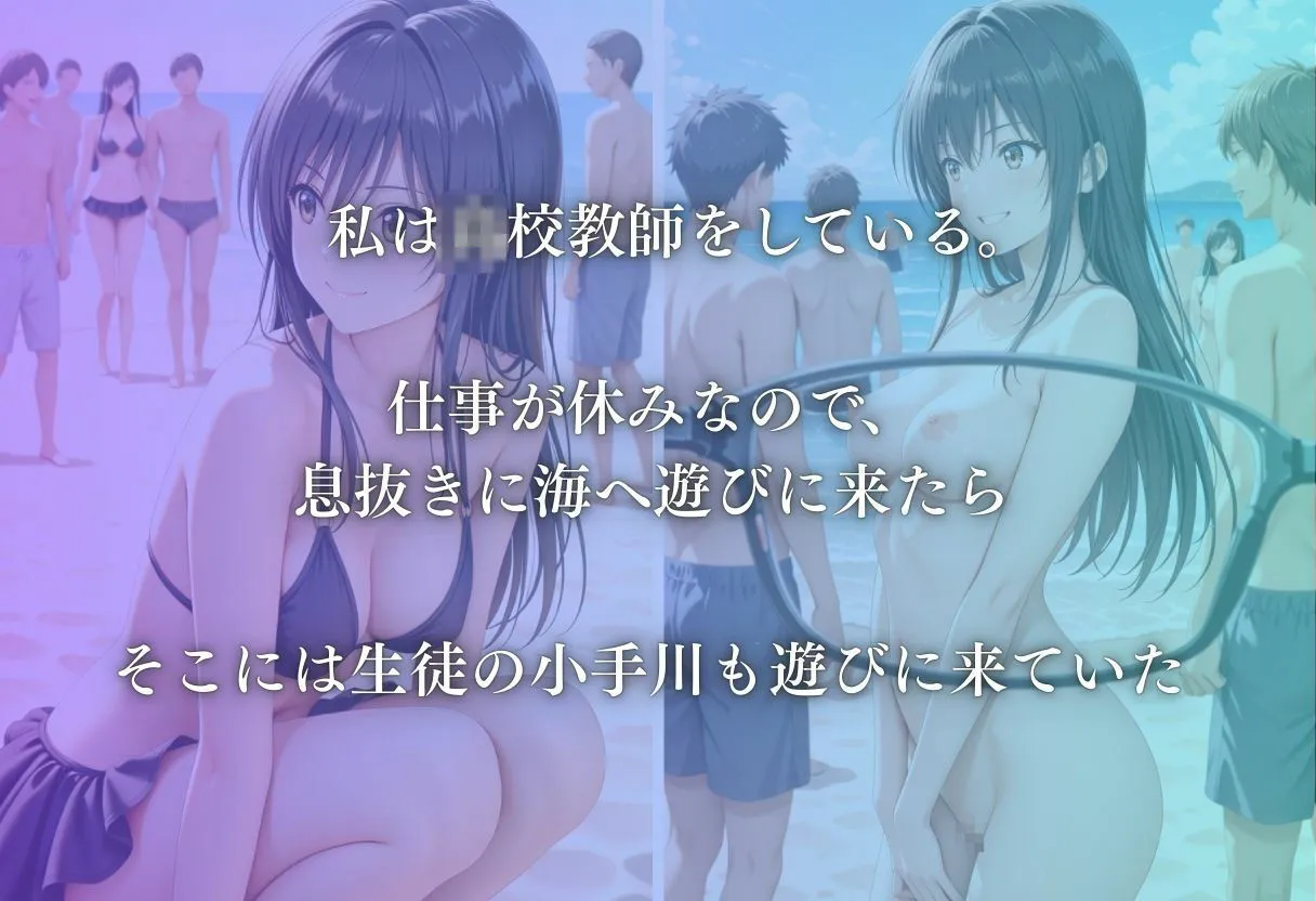 この作品は小手川唯のCG集で、海で家族と遊びに来て担任の先生とバッタリ遭遇する話だよ
