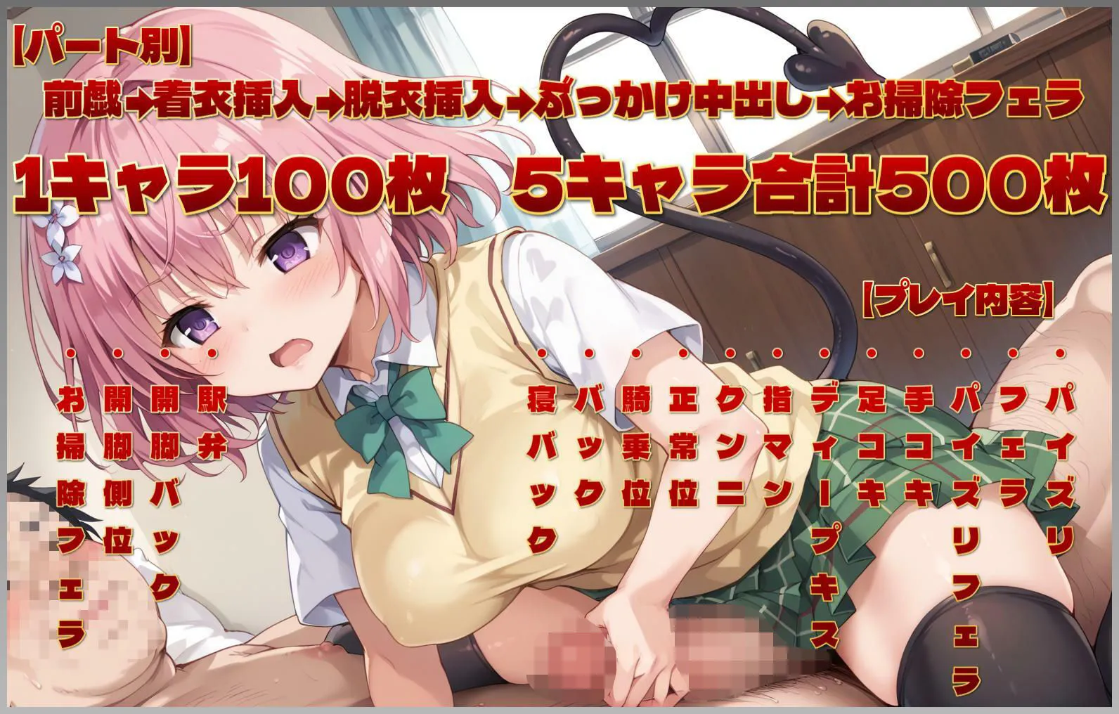 総勢5名のヒロイン達が種付おっさんによって前戯から着衣挿入、全裸挿入、ぶっかけ中出しフィニッシュ、お掃除フェラの構成で各100Pずつなのよ