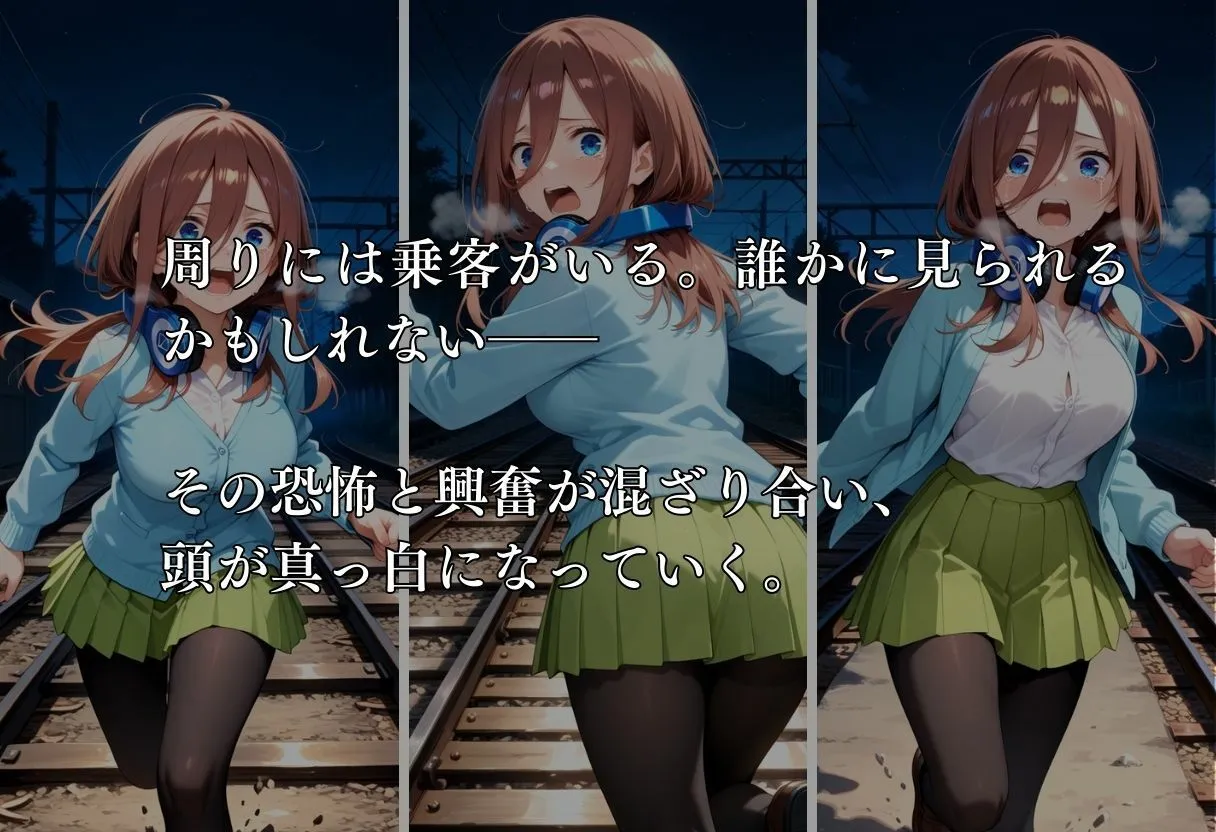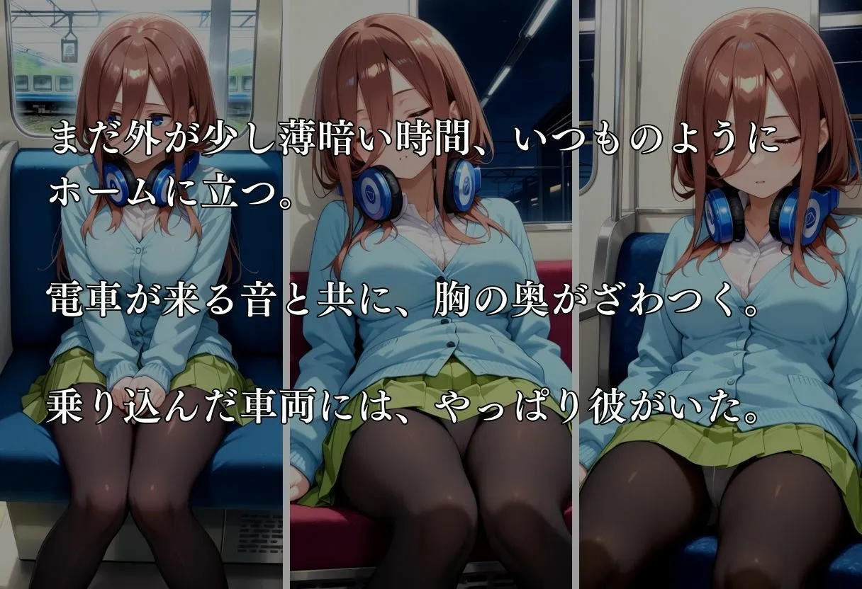 あかねこの作品は五等分の花嫁中野三玖の電車痴漢ストーリーで、毎朝同じ時間同じ車両で彼の隣に立たされてる話なんだよ